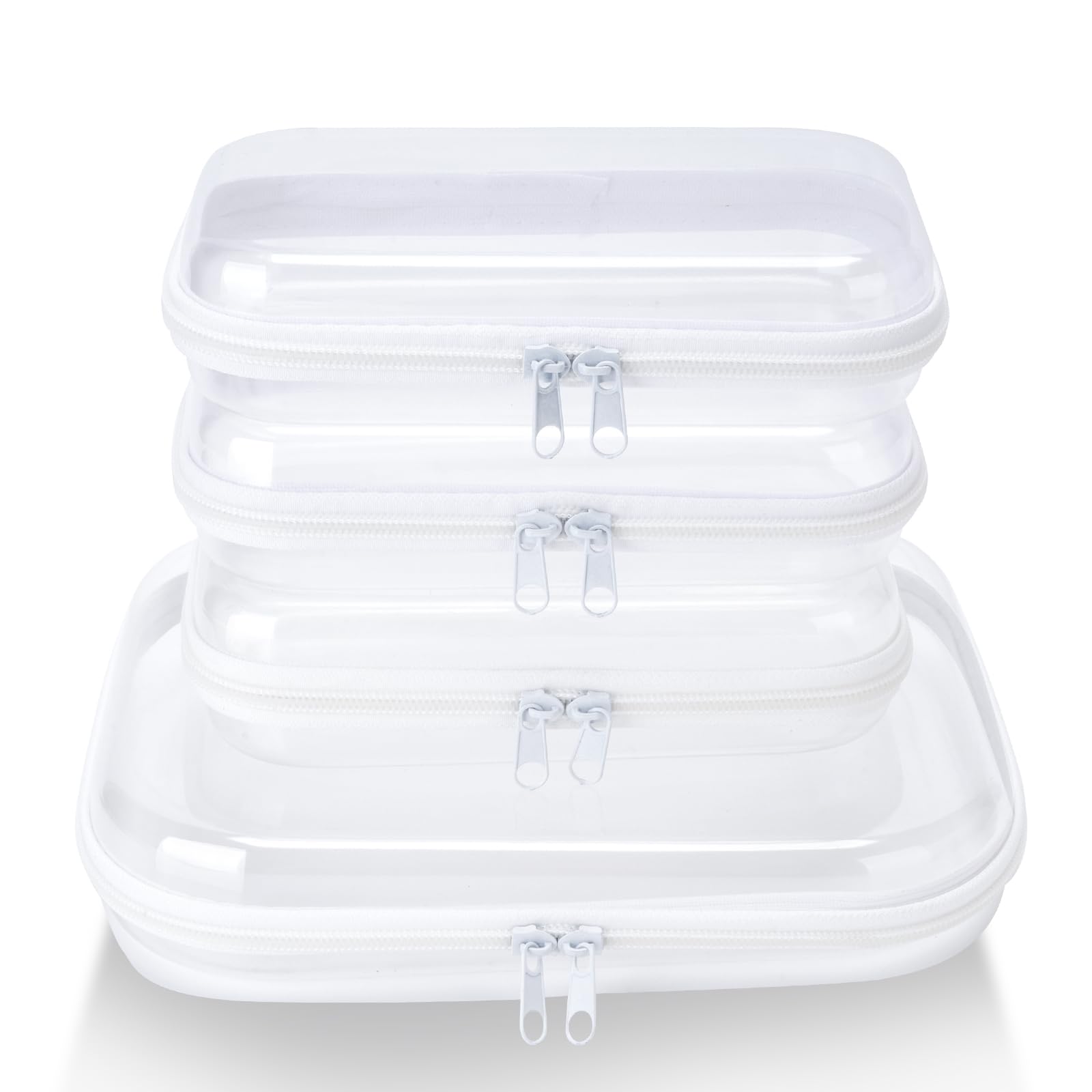 - See Everything at a Glance. Made from high-clarity transparent material, each zipper pouch lets you easily find what you need—saving time while packing, traveling, or organizing your daily carry.