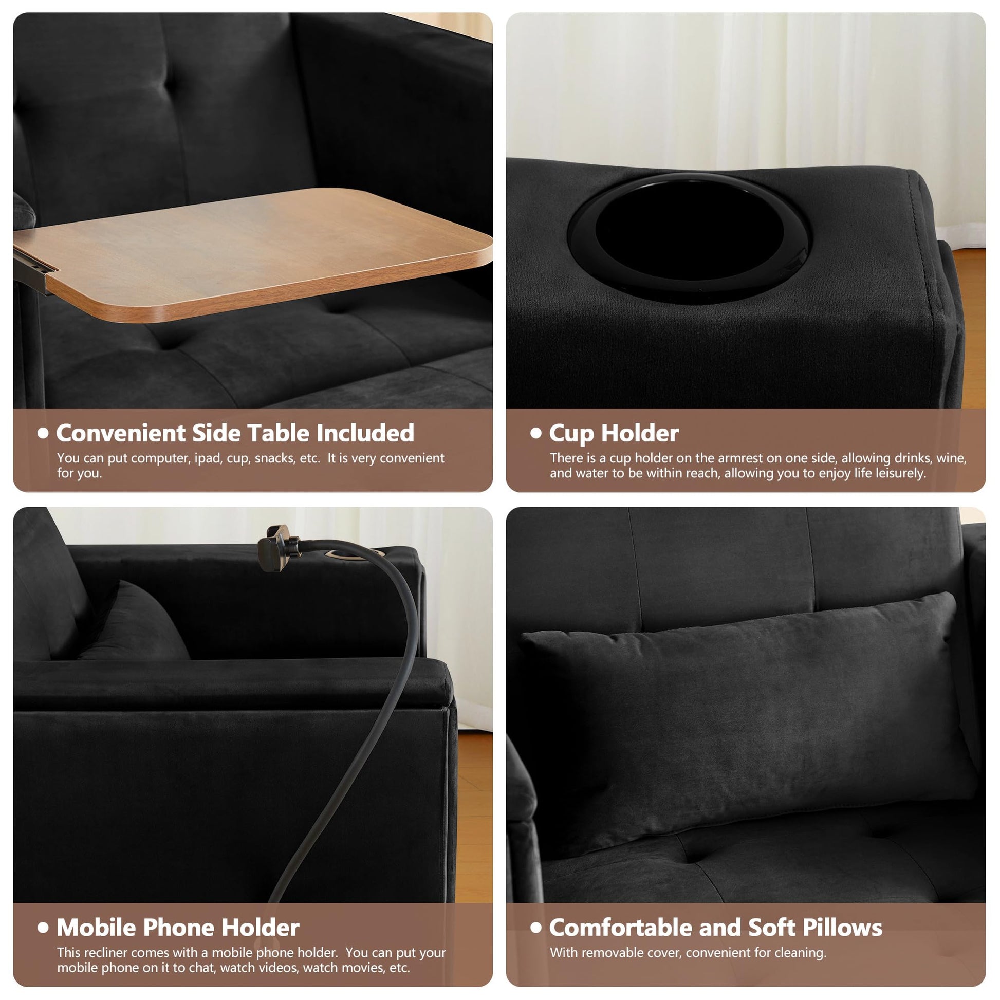 - 【Multifunctional Design】This pull-out sofa bed offers a hidden side table design that can be folded back into the sofa arm when not in use to save space. The adjustable mobile phone holder design allows you to relax your arms when using the mobile phone, and the fixed cup holder reduces the risk of your drinks spilling, providing a great convenience for your daily life, you will like it!