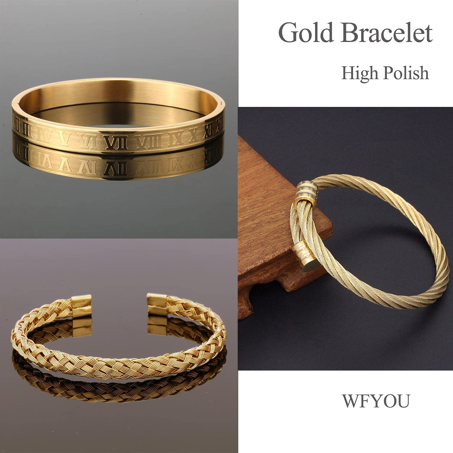 WFYOU 3PCS Stainless Steel Bracelets for Men Gold Roman Numeral Bangle Twisted Cable Adjustable Cuff Bracelet Mens Luxury Jewelry Gifts