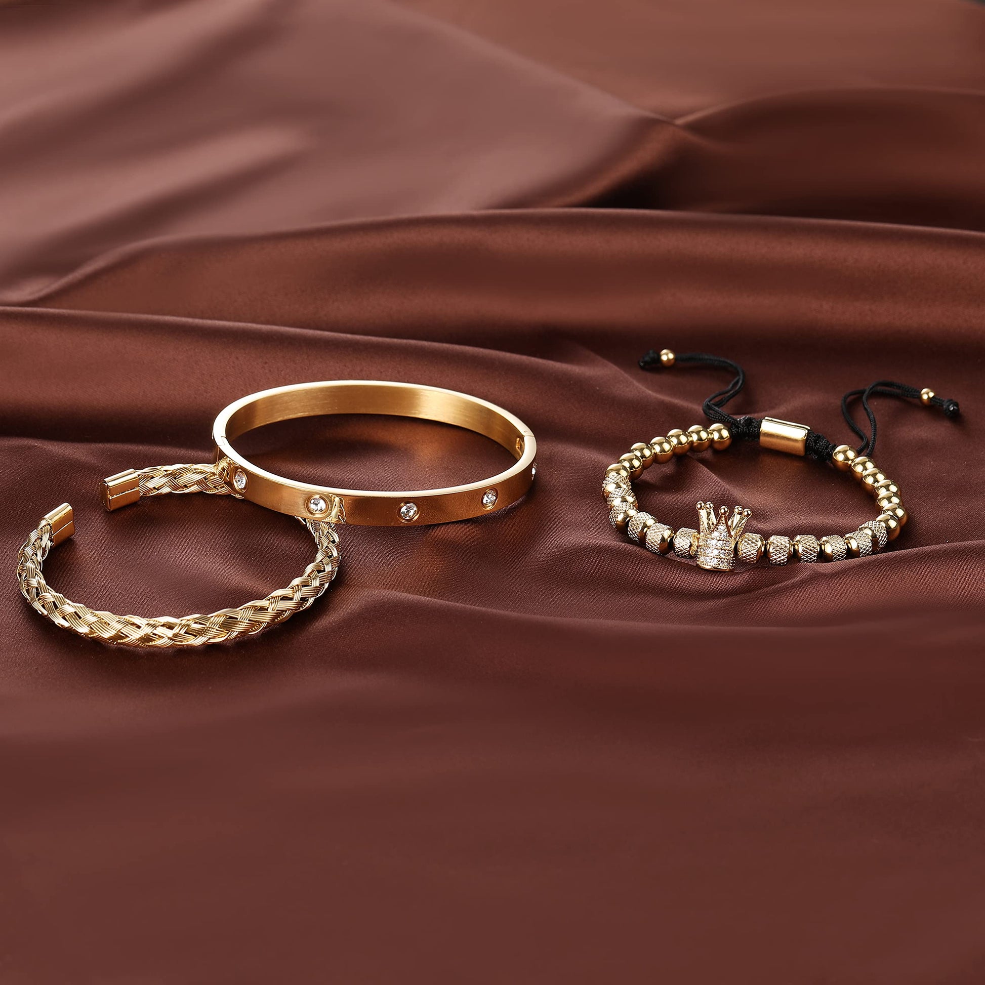 - MODERN LUXURY: Style your wrist with this crown bracelet set. Give a modern edge to a casual t-shirt or formal outfit with this crown design, and wear solo for a polished look or stacked with other bracelets for a cool fashion statement.