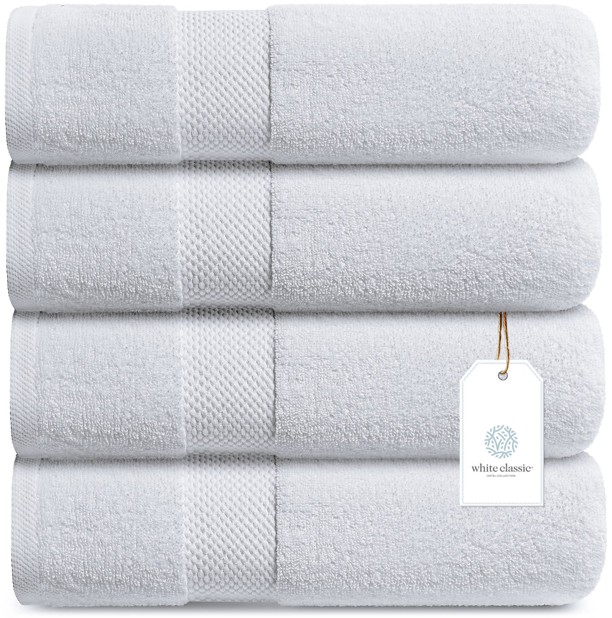 - HOTEL COLLECTION - 4-Piece Bath Towels are provided in abundance. With dimensions of 30x56 inches, there is plenty of space for comfortable lounging after a refreshing shower or relaxing soak. Each towel is made of fluffy 600 GSM long-staple 100% combed cotton, which is soft, durable, quick-drying, and wonderfully absorbent. It absorbs more than any Turkish Cotton Towel.