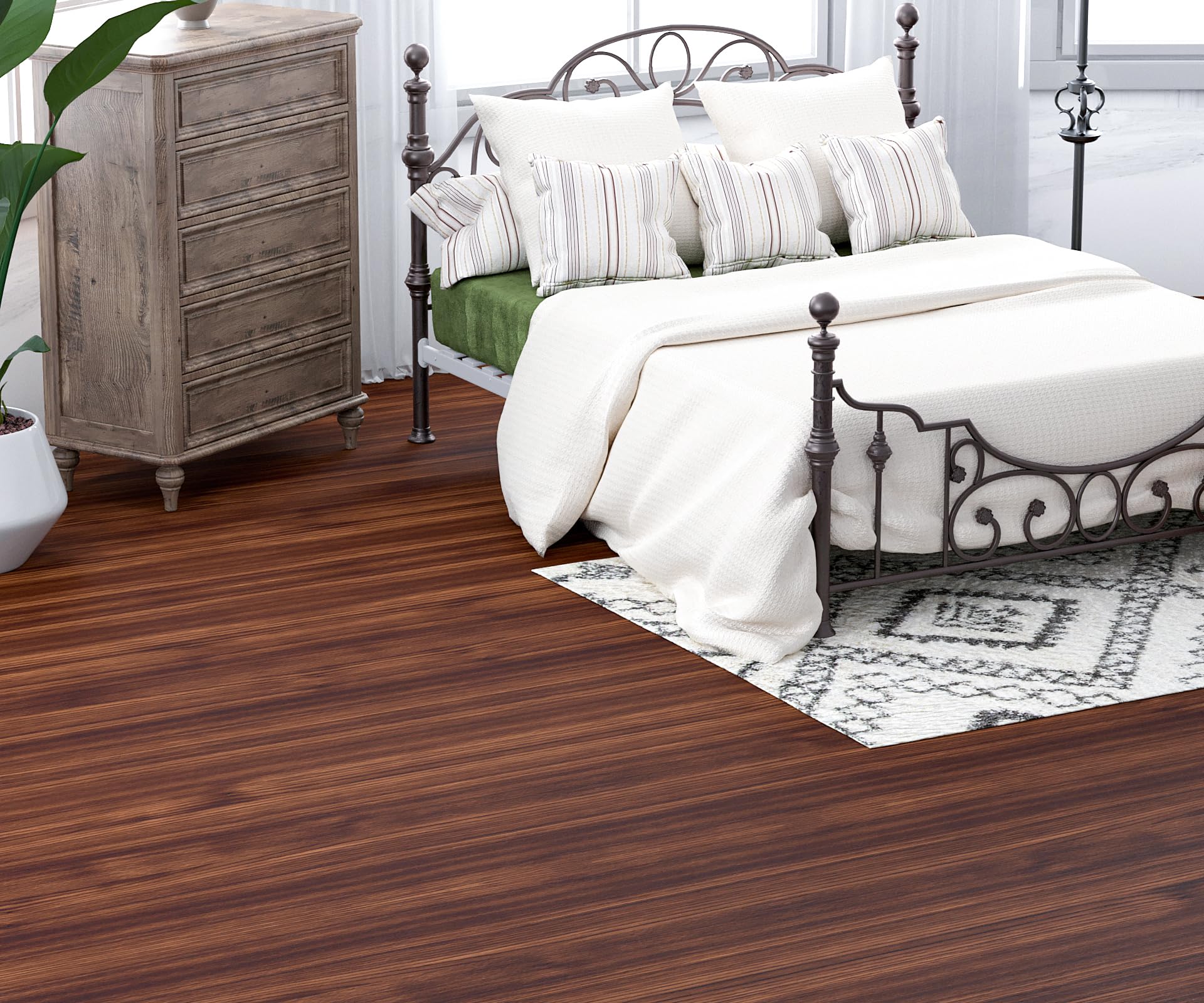 - 【Quick and Easy Installation】Our peel and stick vinyl flooring is extremely easy to install and requires no special tools or adhesives. Simply peel off the backing and stick them onto any flat and clean surface.