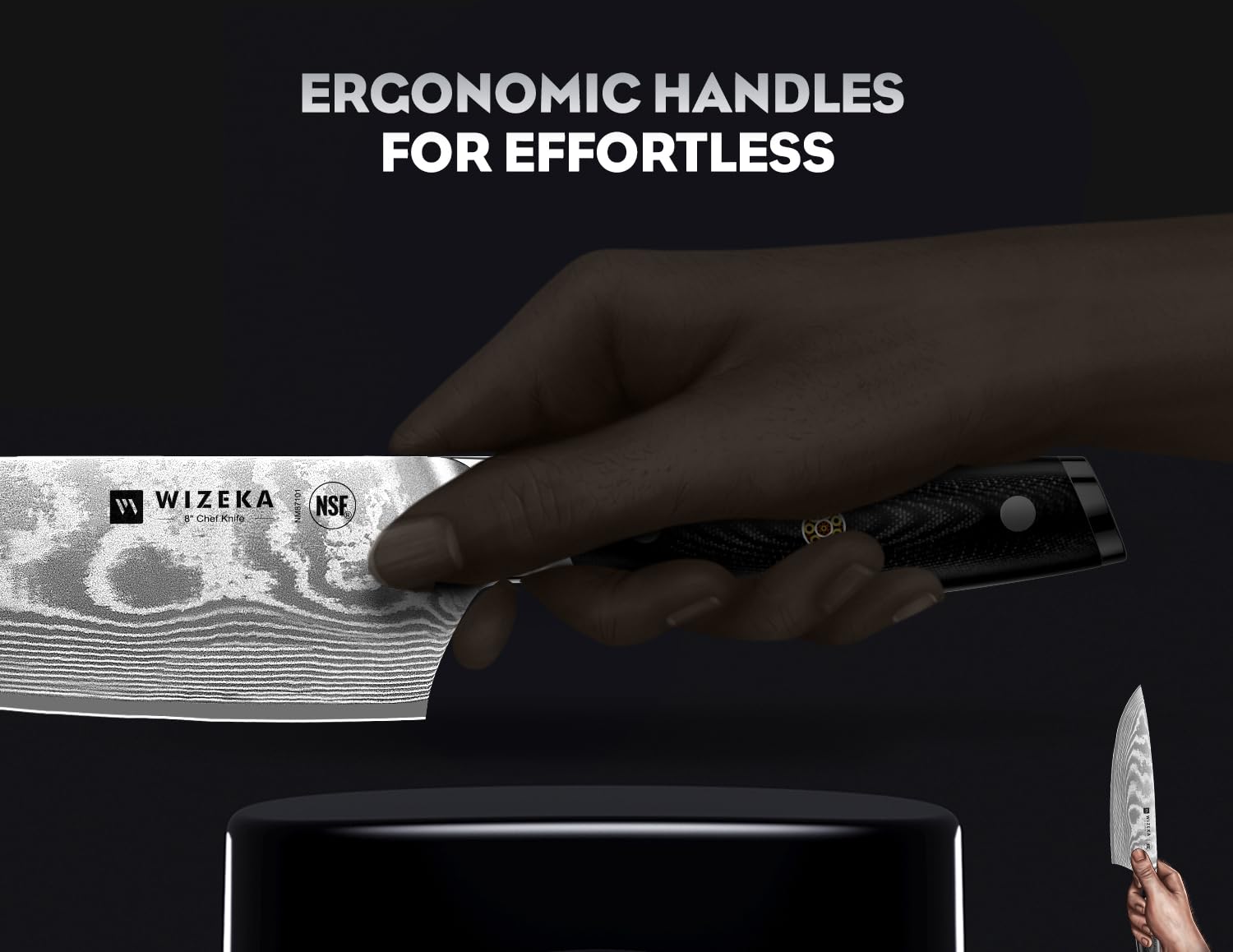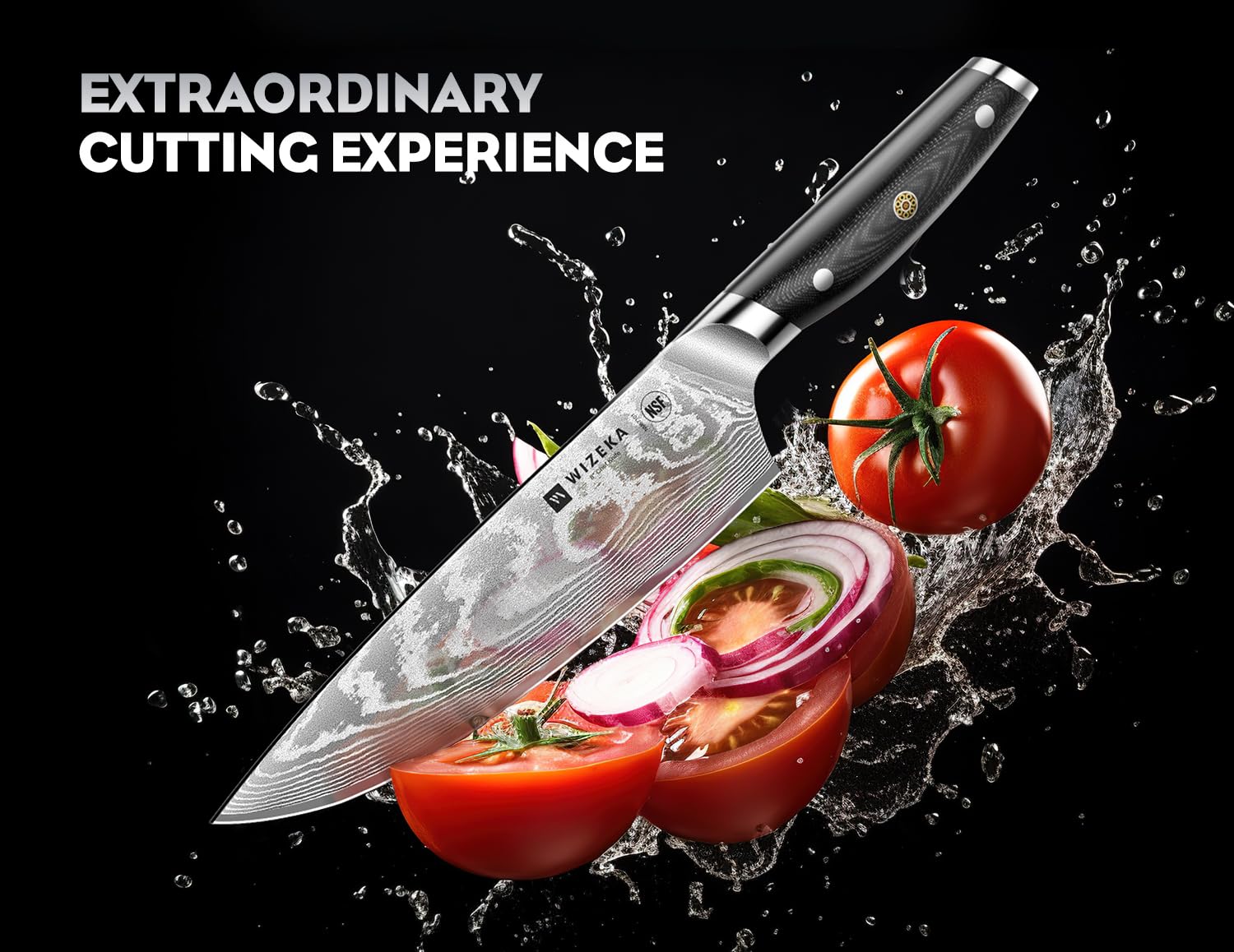 - VG10 DAMASCUS STEEL.WIZEKA Damascus chef knife set uses the world-recognized Japanese high-end steel VG10 as the steel core.Rockwell hardness can reach 60+.And it has excellent edge retention,no need to sharpen the knife more than once a year