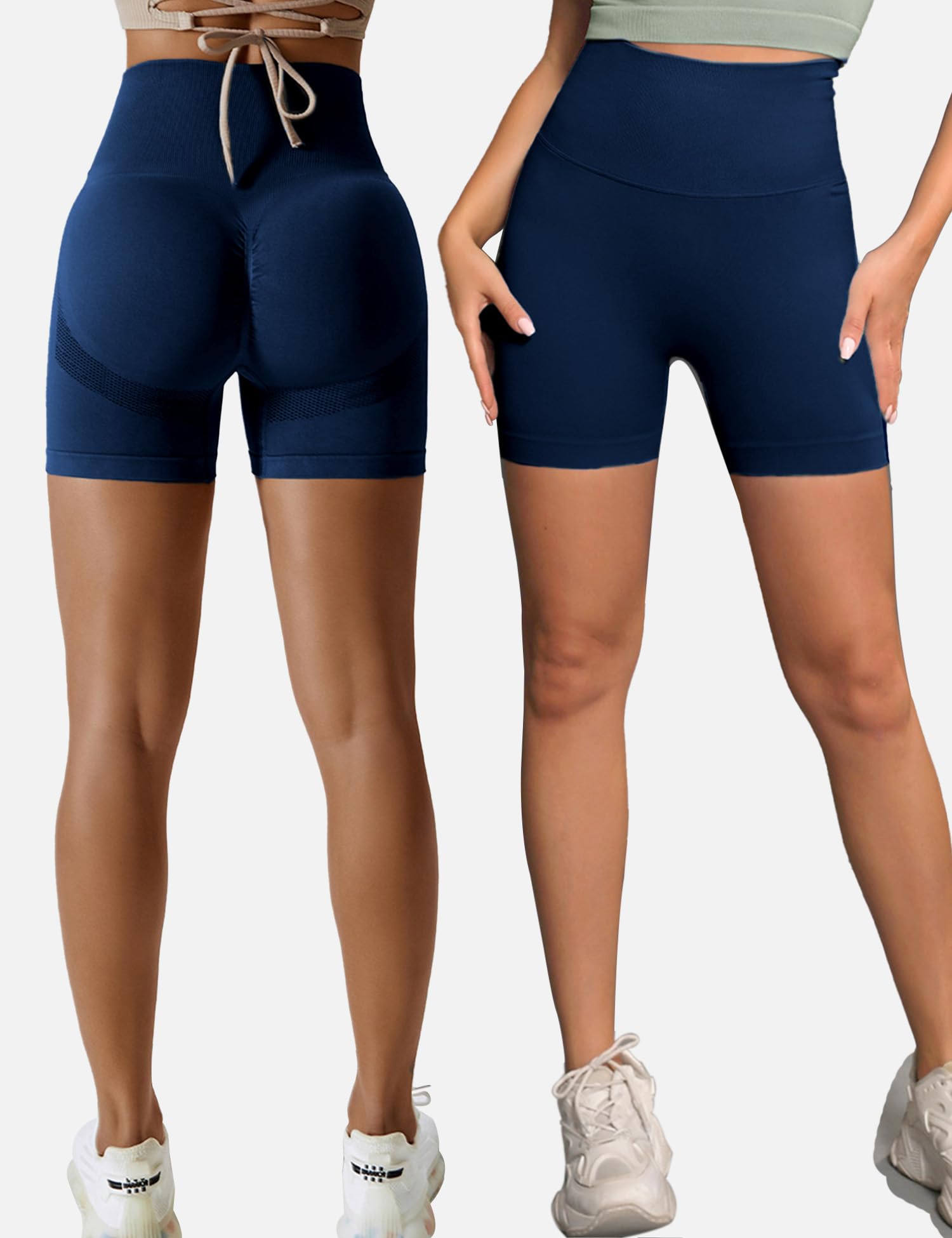 Womens 5" Scrunch Butt Lifting Shorts Workout Gym High Waisted Tummy Control Seamless Booty Yoga Biker Athletic Active Running Short Pants Compression Fitness Clothes Sport Exercise Tights Navy Blue