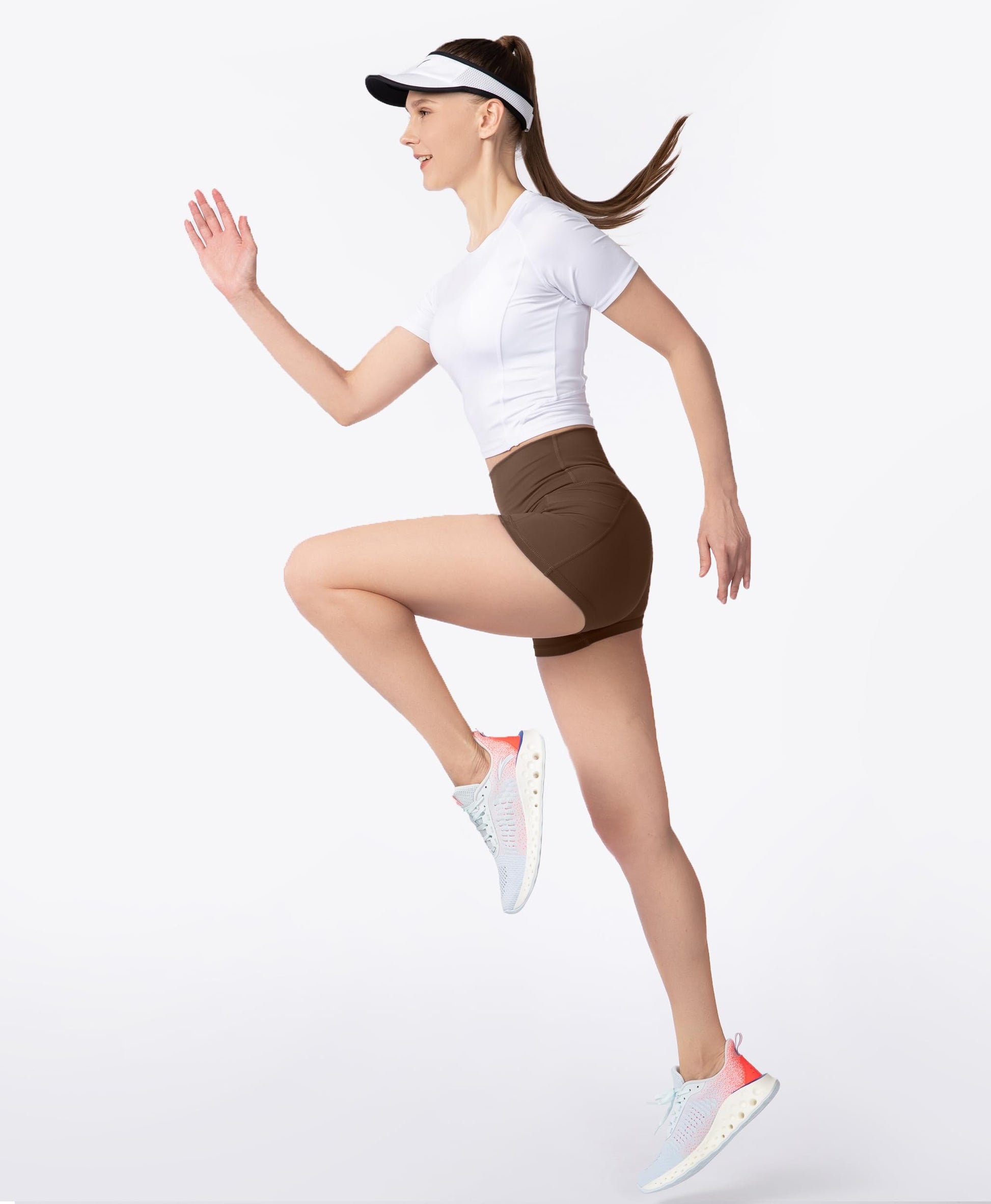Women's High Waist Yoga Shorts with Side Pockets Tummy Control Running Gym Workout Biker Shorts for Women 3"(Brown, XXL)