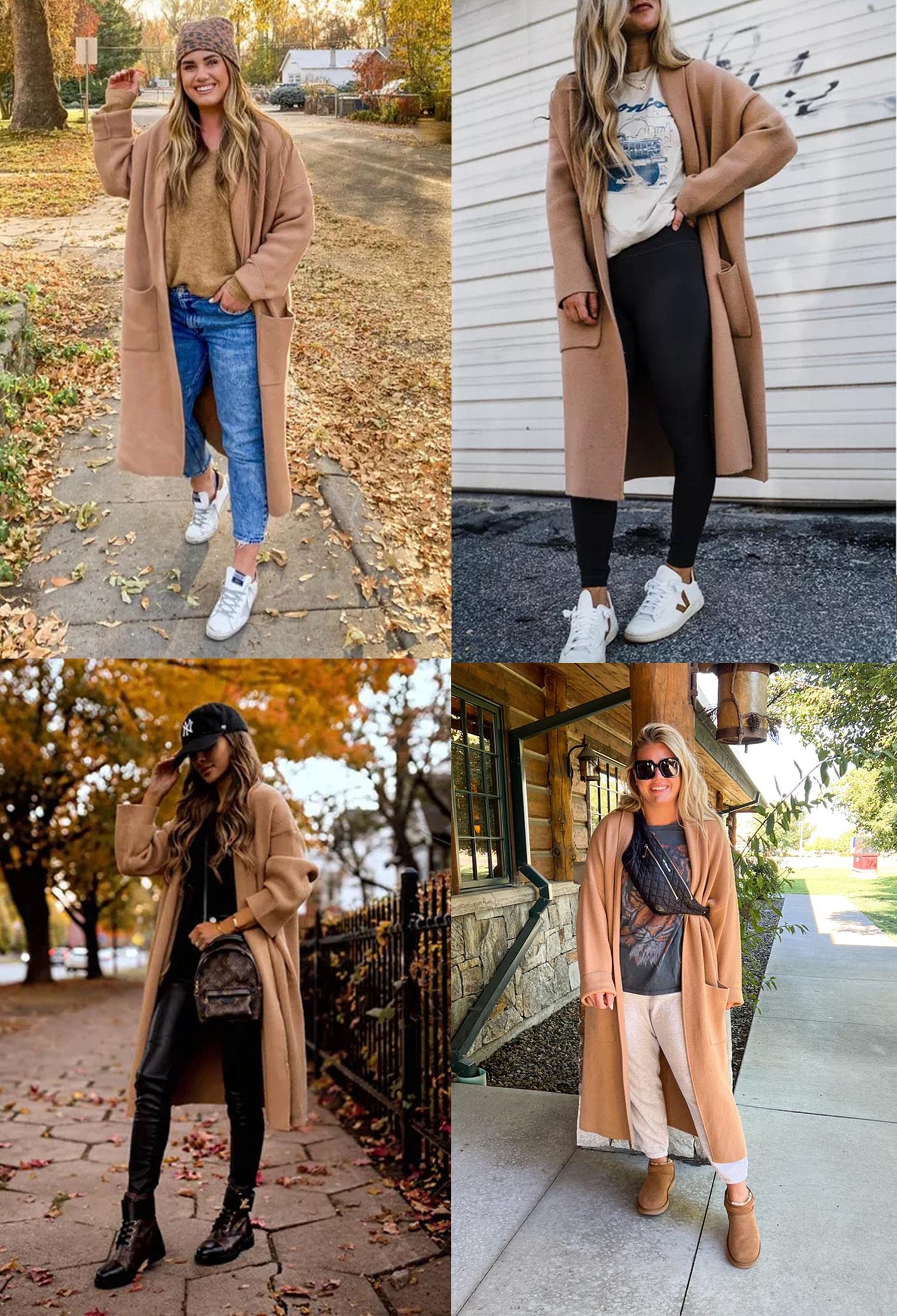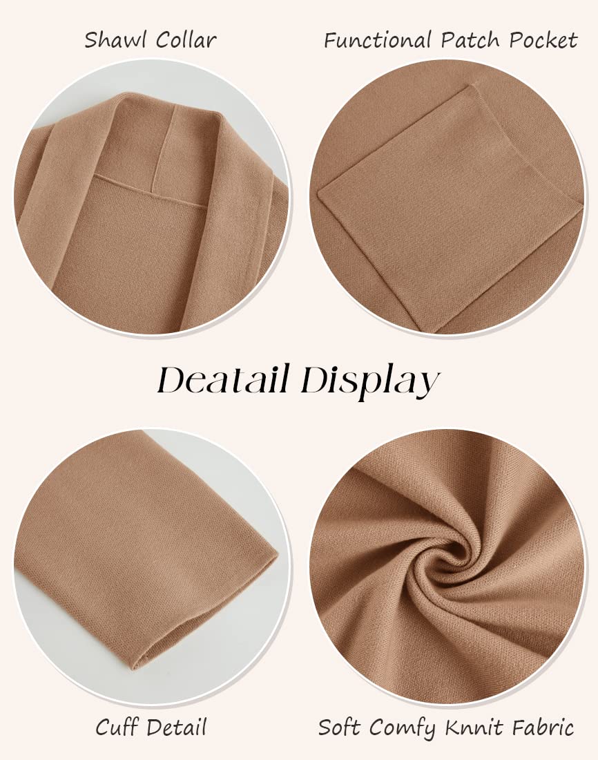 - FEATURES -- This fall oversized cardigans for women feature long sleeves, lapel, open neck and an open front, drop shoulder, loose fit, solid color, warm knitted fabric. It looks dressy or casual and is long enough to cover knee. Two functional patch pockets on the front, slouchy, chic, simple but classic.