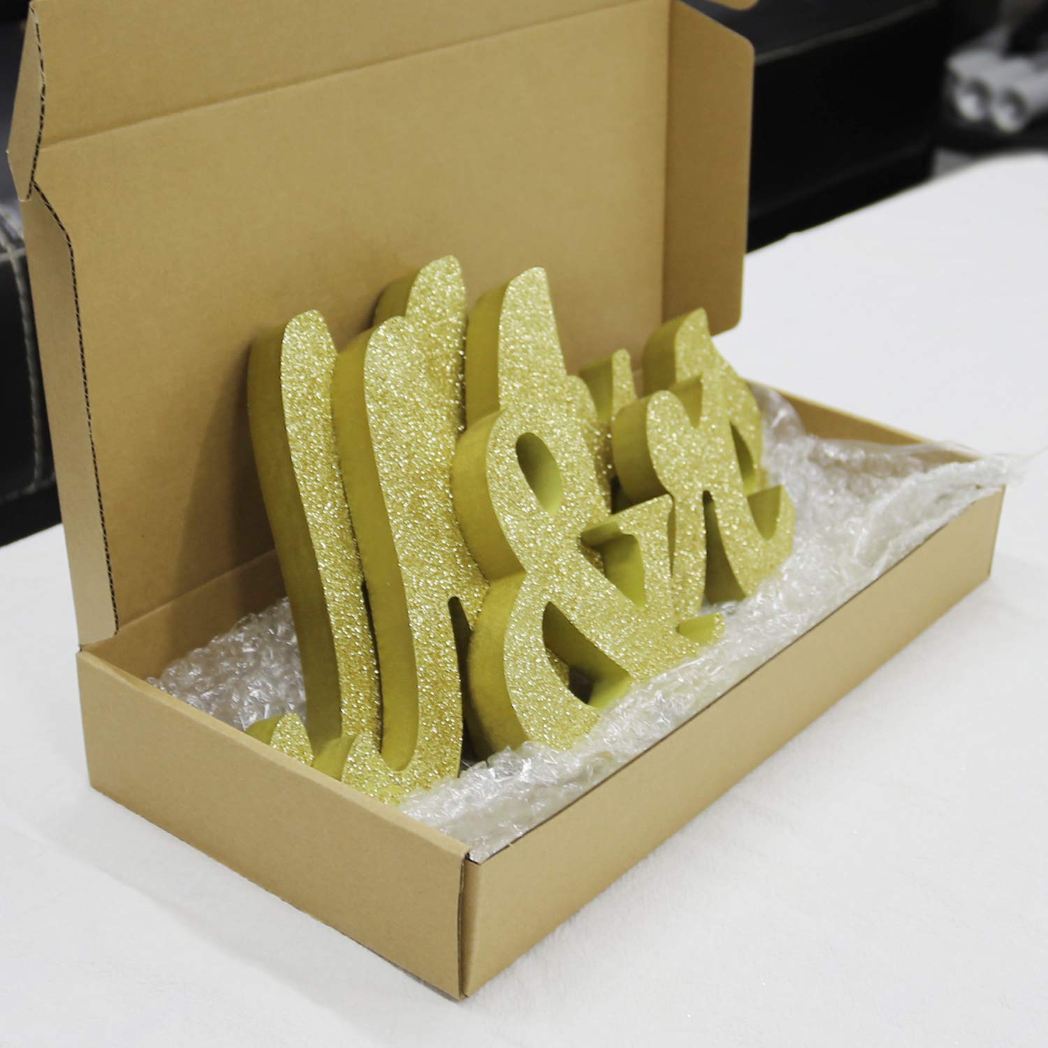 - { CLASSICAL DESIGN } --- Freestanding&Seperately design allows it can be moved to any position.The cut of the lettering is smooth.As rustic wedding decorations,this beautiful style of calligraphy and bright powder make the characters elegant and creat a romantic atmosphere for your wedding and party.It's best choice as mr and mrs wedding table sign,wedding sweetheart table decorations and Christmas table decorations.