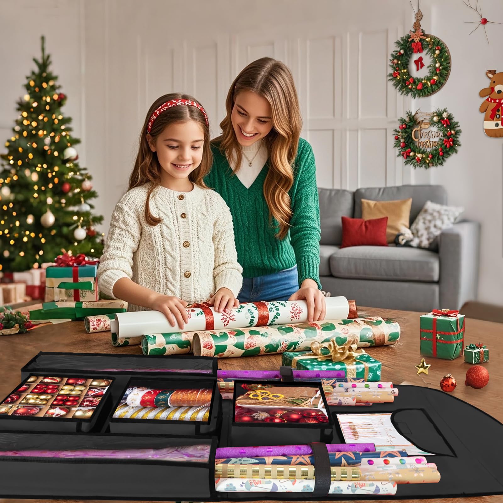 - Upgraded Capacity: Many storage bags are often designed too small and can not accommodate items, so we have increased the capacity to help you store more items. Our extra large gift wrapping container is 40 inches in length, you can store up to 6 paper tubes on each side, and the four bags on the front are about 9*10.2 inches, it can store larger wrapping materials to avoid not fitting.On the back side have two large bags