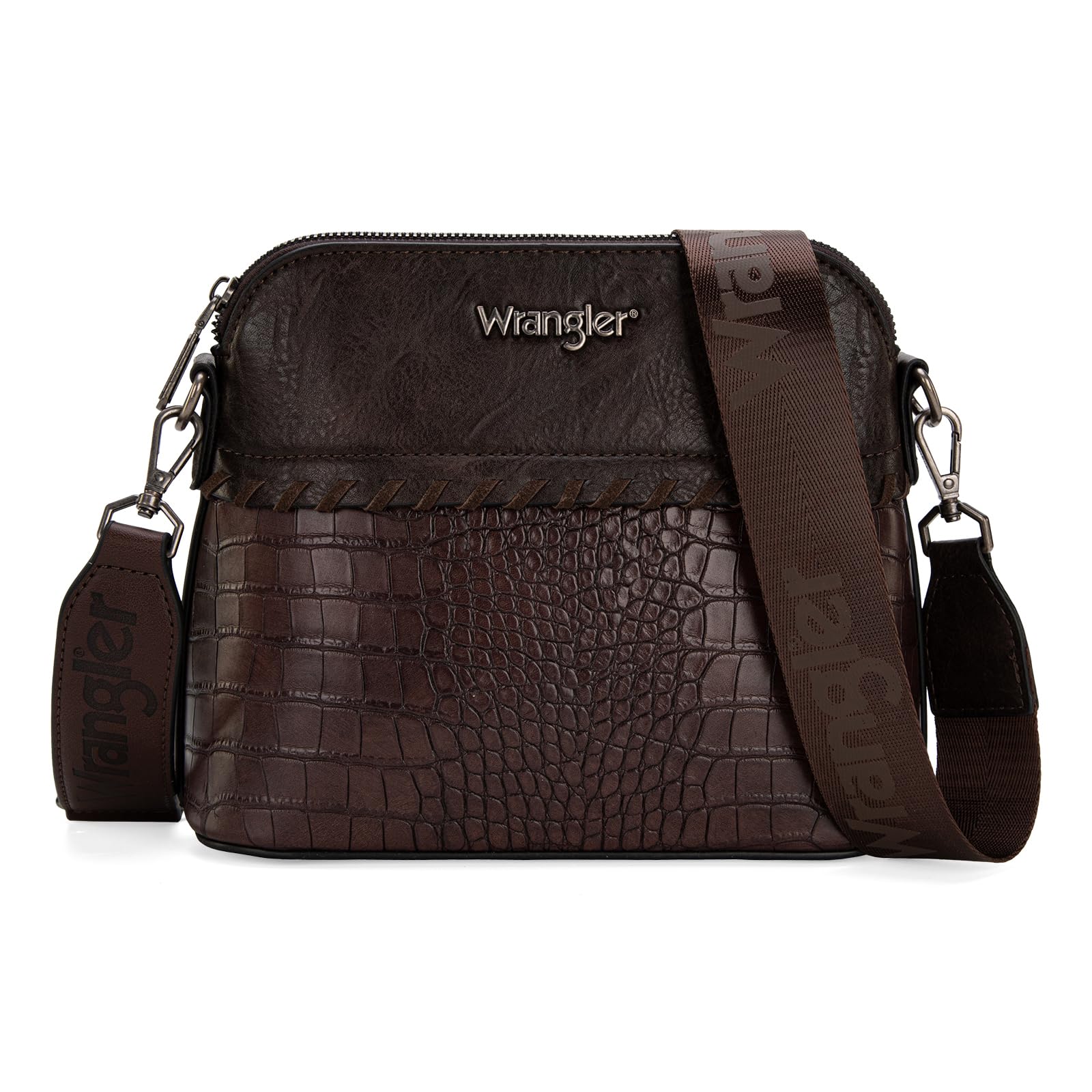 Wrangler tote bag for womens purses and handbags for women Crocodile coffee satchel bags 3pcs purse set gifts medium crossbody with guitar strap WG3-B8321CF