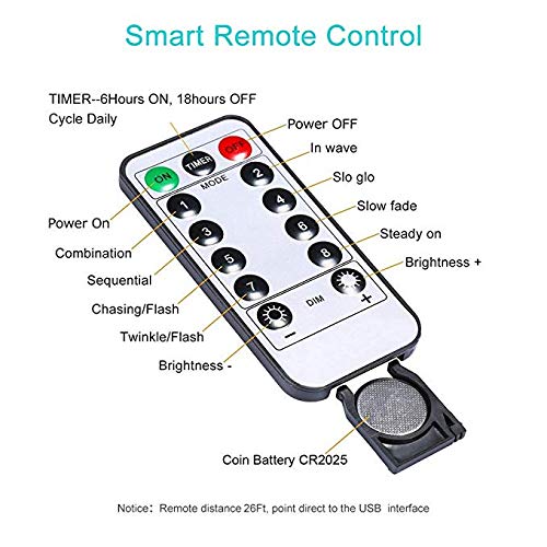 - Remote control with Timer function: the lights are controlled by remote, save you a lot of troubles. It is much more convenient to control with timer function. You have 8 different modes of light effects, isnot it cool?
