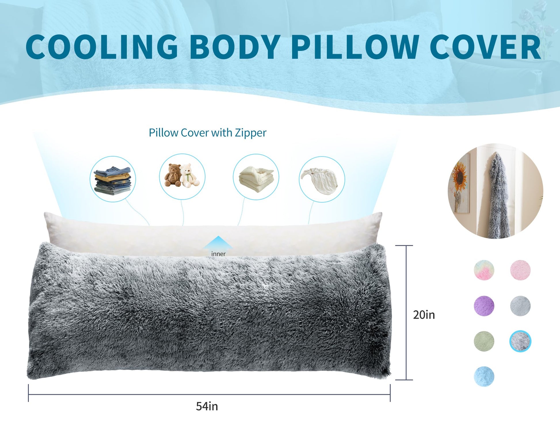 WSOFRLAC Cooling Body Pillow Case Cover with Zipper 20x54 Cooling Body Pillow Cases King Size Pillow Cases Fluffy Dark Gray Cool Long Body Pillows Cases for Adults Kids Side Sleeper Machine Washable