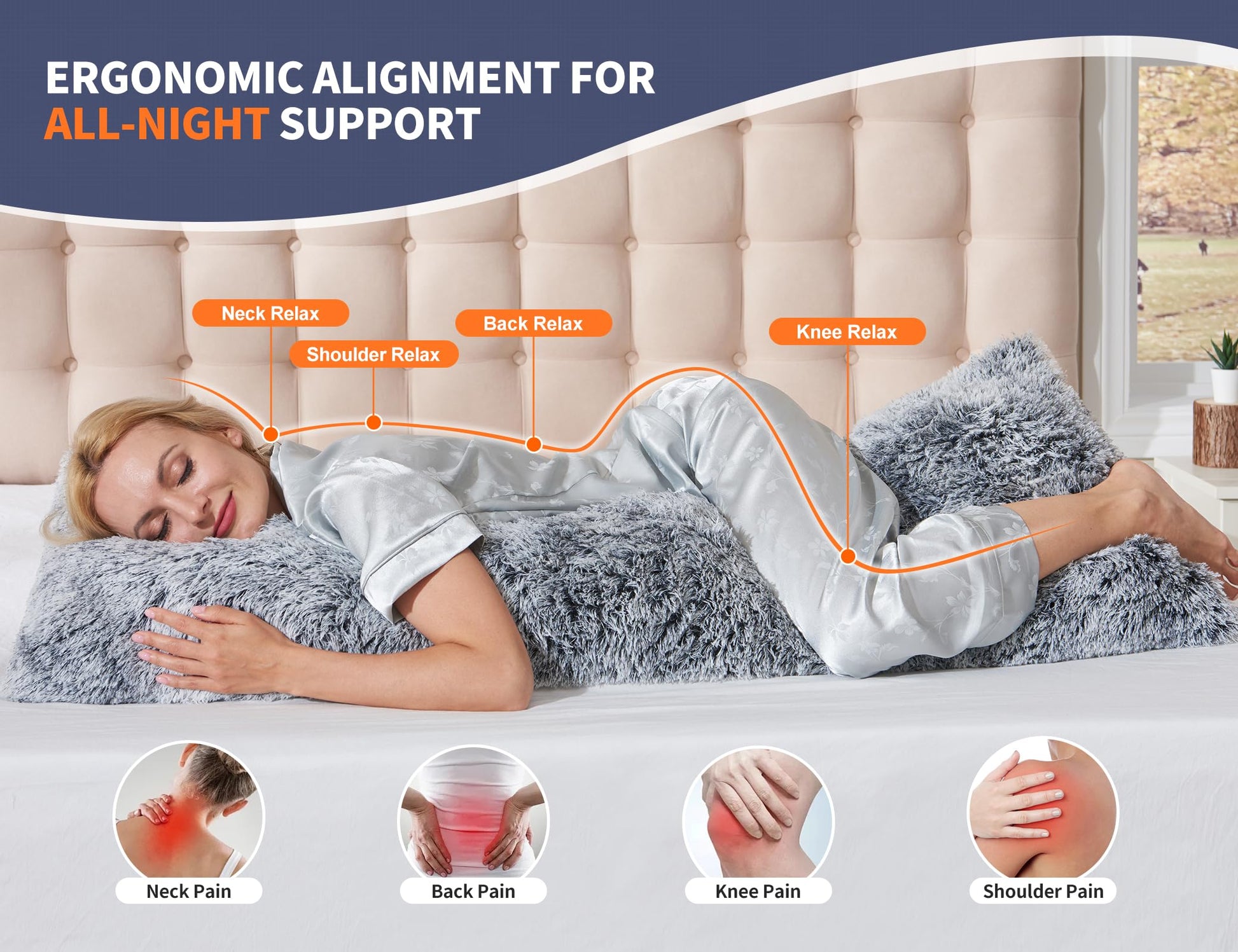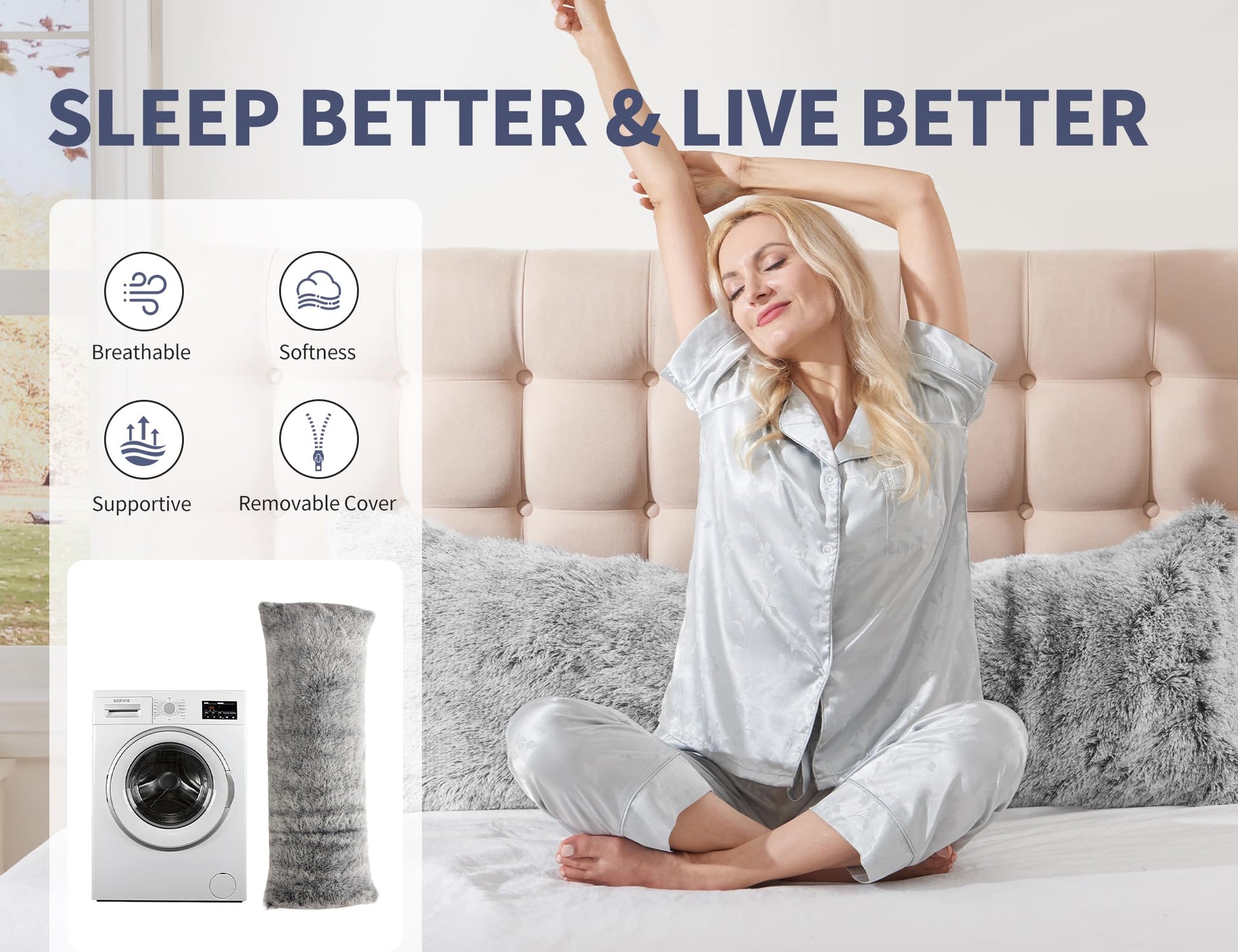 - ULTRA-SOFT & COOLING PILLOW CASE: Crafted from plush faux fur and cooling satin, this body pillow cover with zipper offers an incredibly soft and inviting touch. With just the right amount of this dark grey pillow case's thickness, it keeps you cool without overheating, the cooling pillow case is perfect for hugging or supporting your back, hips, neck, and belly. This 20x54 body pillow case is ideal for cozy nights in cooler months.