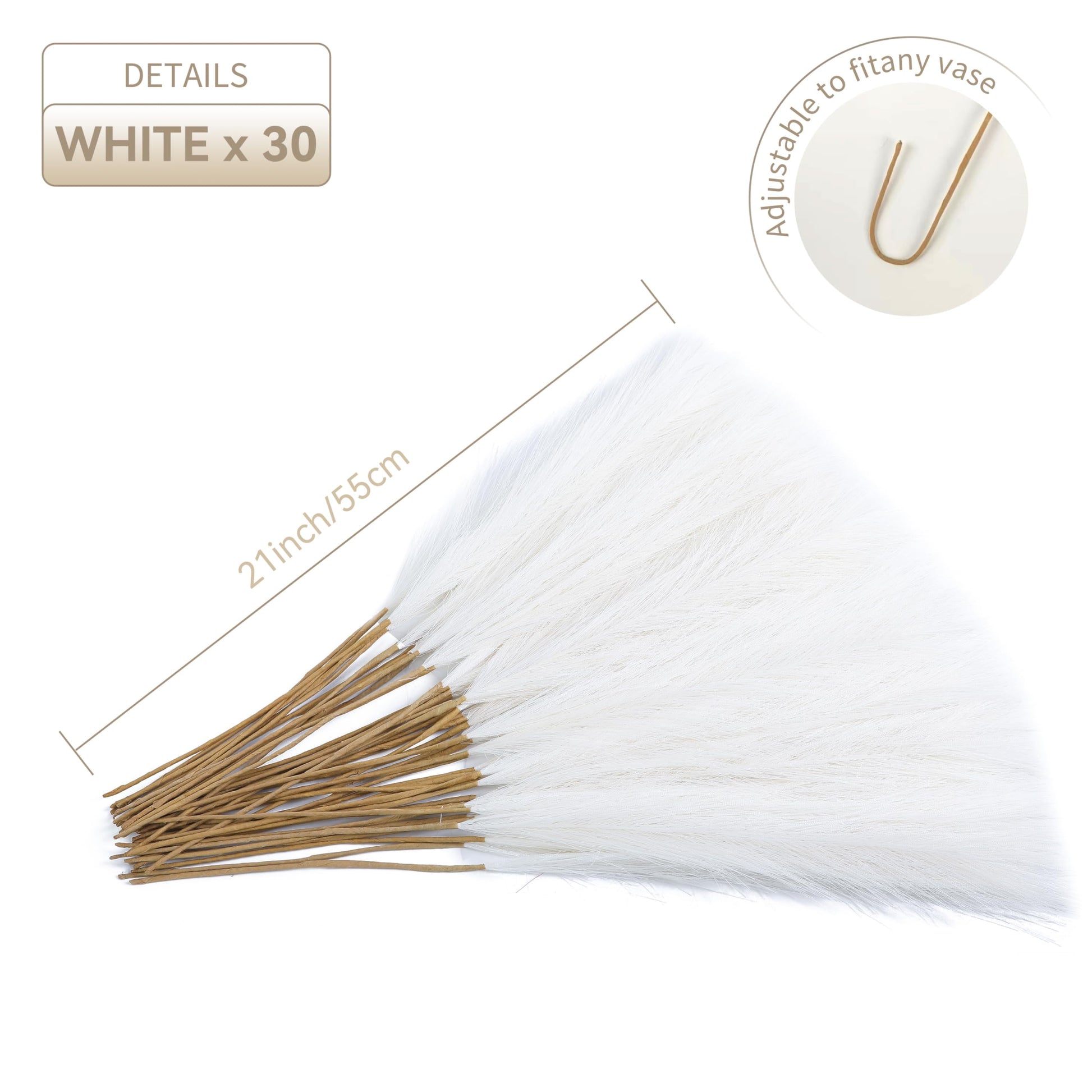 Wttisel 30pcs 22" White Pampas Grass - Faux Pampas Grass Decor Short Artificial Pampas Grass for Boho Home Wedding Mothers Day Decoration