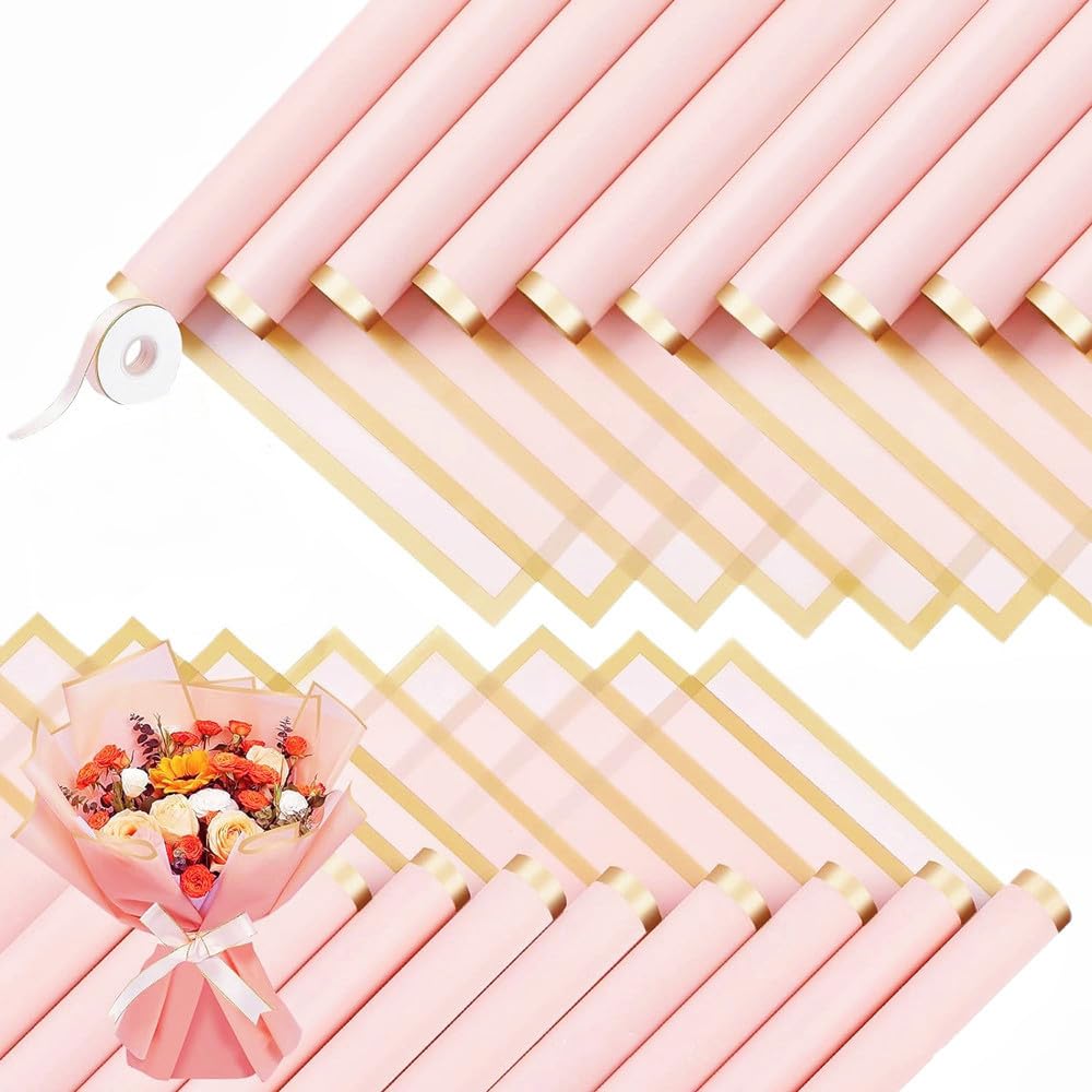XIYUAN 20 Counts Gold Edge Fresh Flowers Wrapping Paper,DIY Crafts,Gift Packaging or Gift Box Packaging,Waterproof Flower Wrapping paper 22.8X22.8 inches Florist Bouquet Supplies, (Pin Blue)