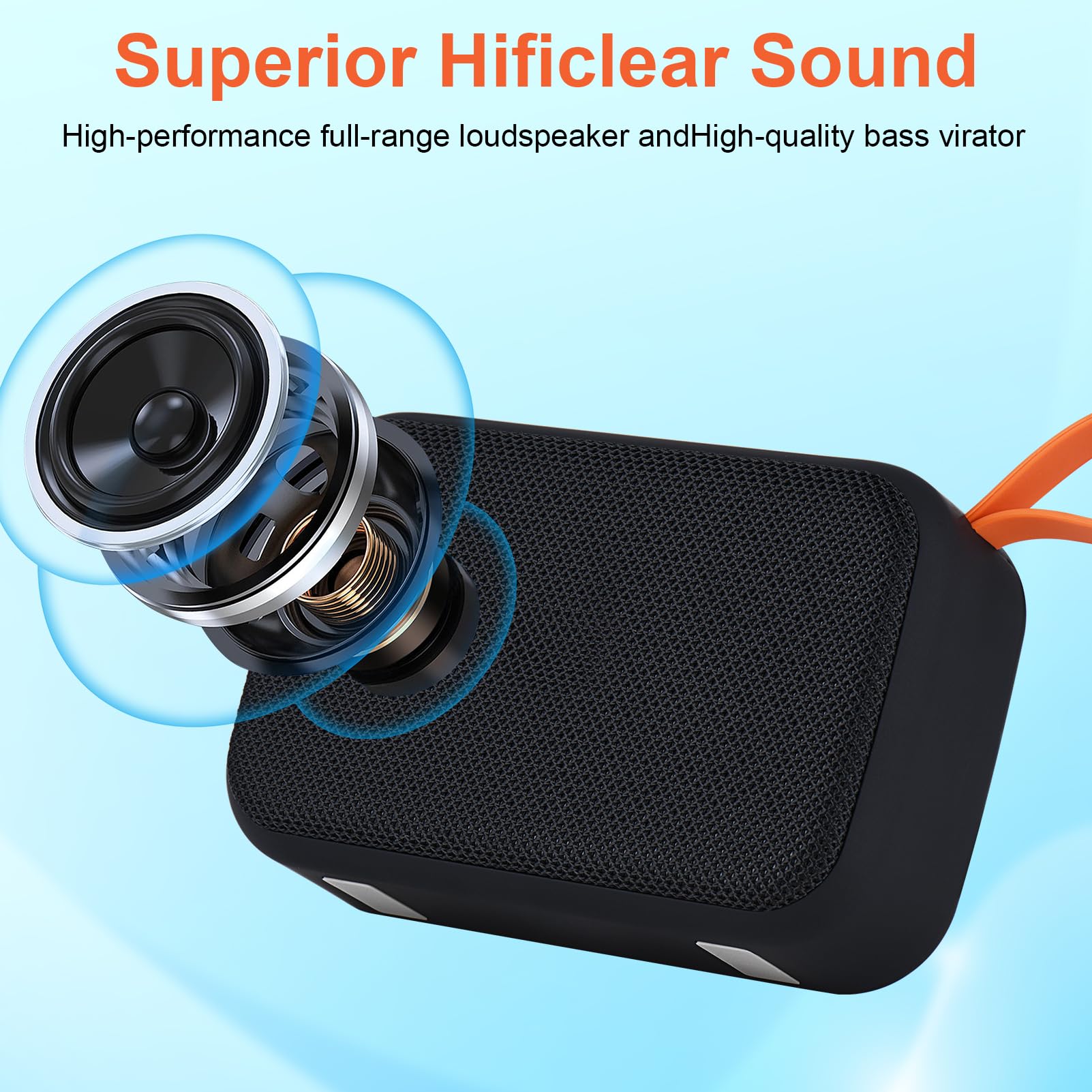 - 【Mini Speaker That Packs A Punch 】The Small Bluetooth Speaker is engineered to deliver an audio experience that transcends its compact size. With a focus on premium sound quality, it boasts high-fidelity audio reproduction that brings out the subtleties in your music. From deep bass to crystal-clear treble, every note is rendered with precision, ensuring you experience your favorite tracks in all their glory.