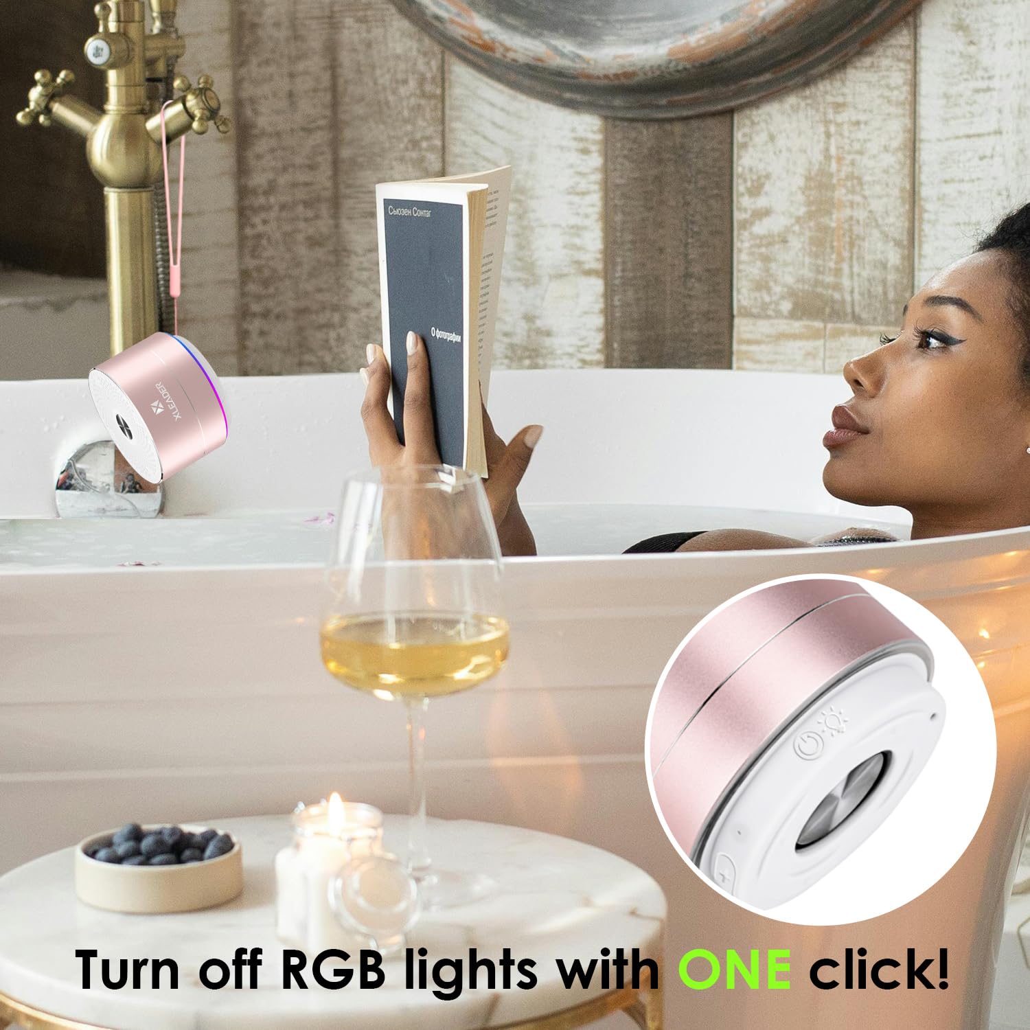 - ♬ 【Best Gift】 This mini shower bluetooth speaker features colorful LED ambient lights at the bottom, allowing you to enjoy both music and lights. Additionally, the built-in microphone enables you to answer incoming calls. We also provide a 3-year warranty, making it a perfect gift for your friends and yourself!