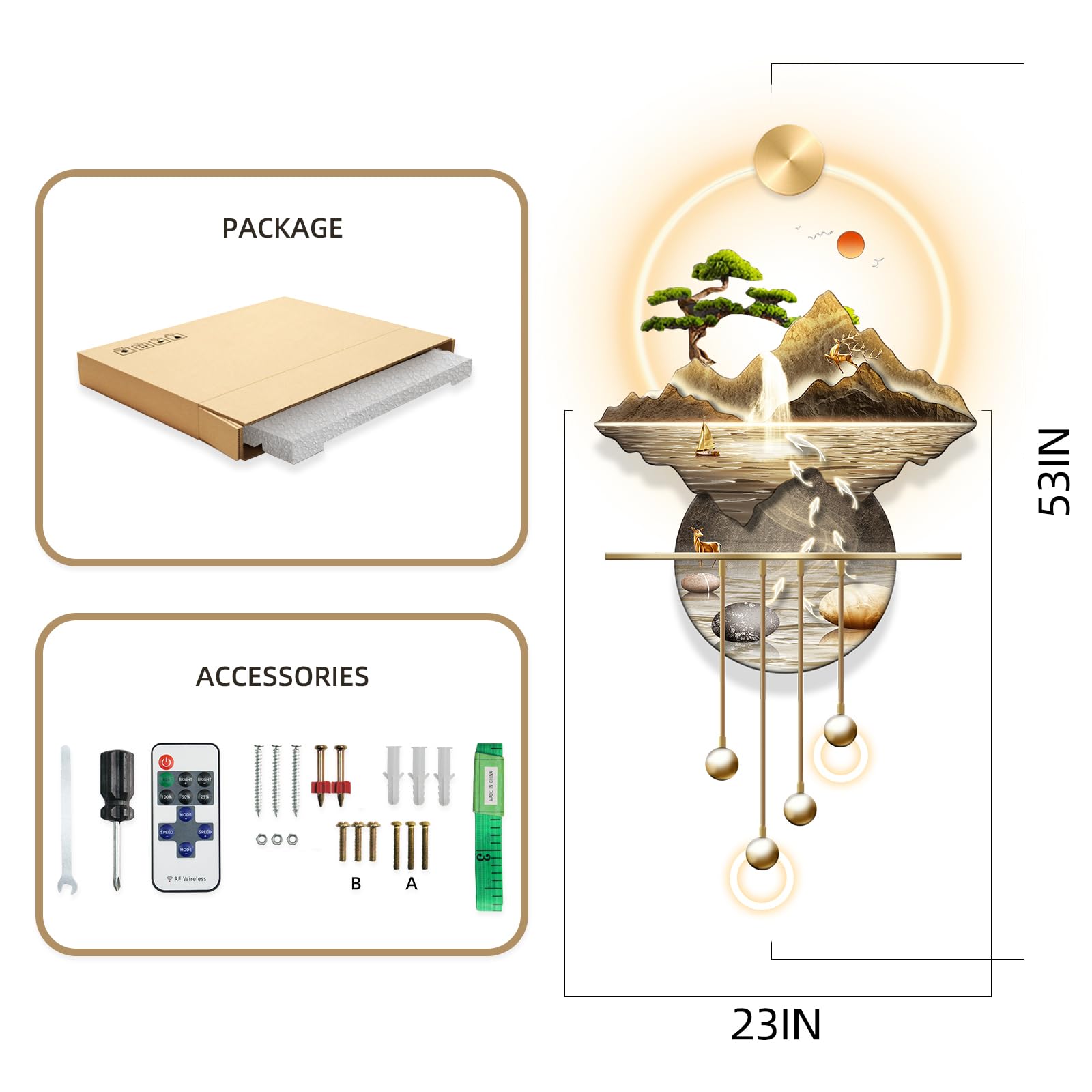 - Art decor That Means Something: Featuring iconic elements like majestic mountains, peaceful rivers, and graceful wildlife, this modern wall sculptures led light, symbolizes harmony, peace, and our connection to nature. It’s more than decor — it’s a meaningful centerpiece that **sparks reflection and conversation.