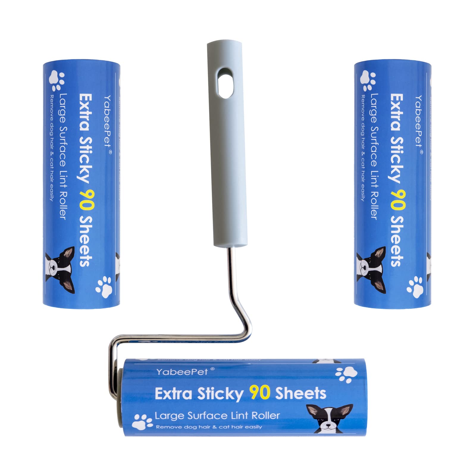 YabeePet Extreme Sticky Large Surface Lint Roller, 6.3'' Giant Pet Hair Remover Roller for Pet Dog Cat Hair, Clothes&Furniture Cleaning, 90 Sheets (1 Roller + 2 Refills)