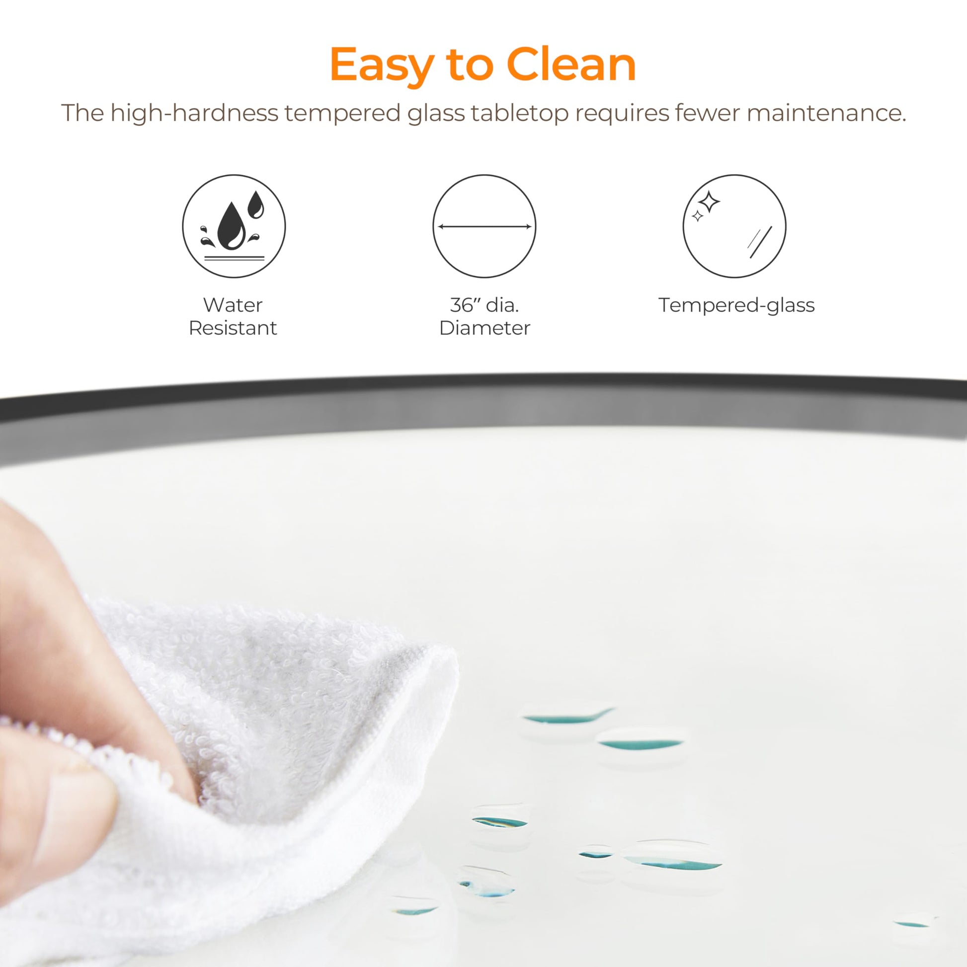 - Solid Construction: Crafted of a premium metal frame and strong tempered glass, this round coffee table boasts a robust structure for maximum stability