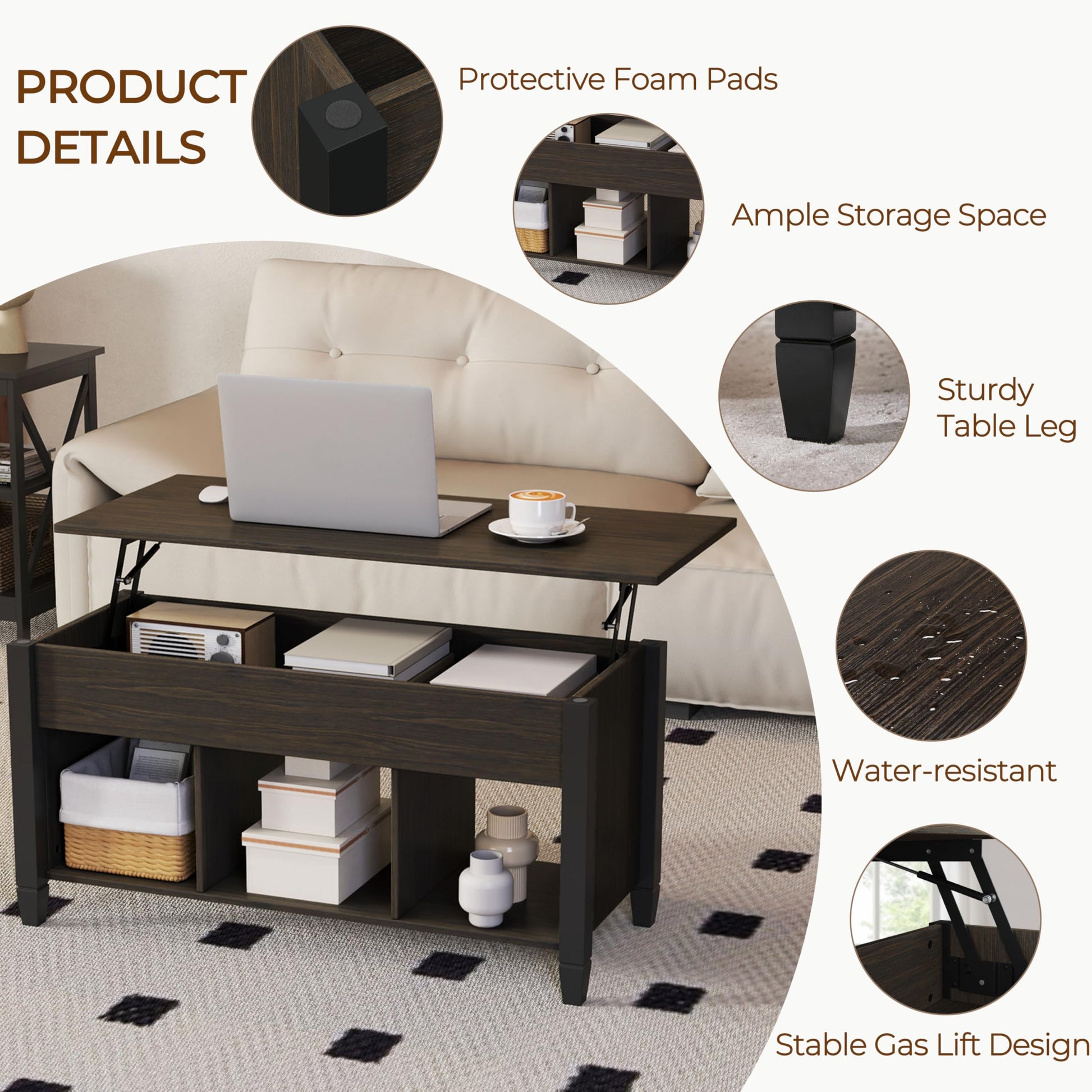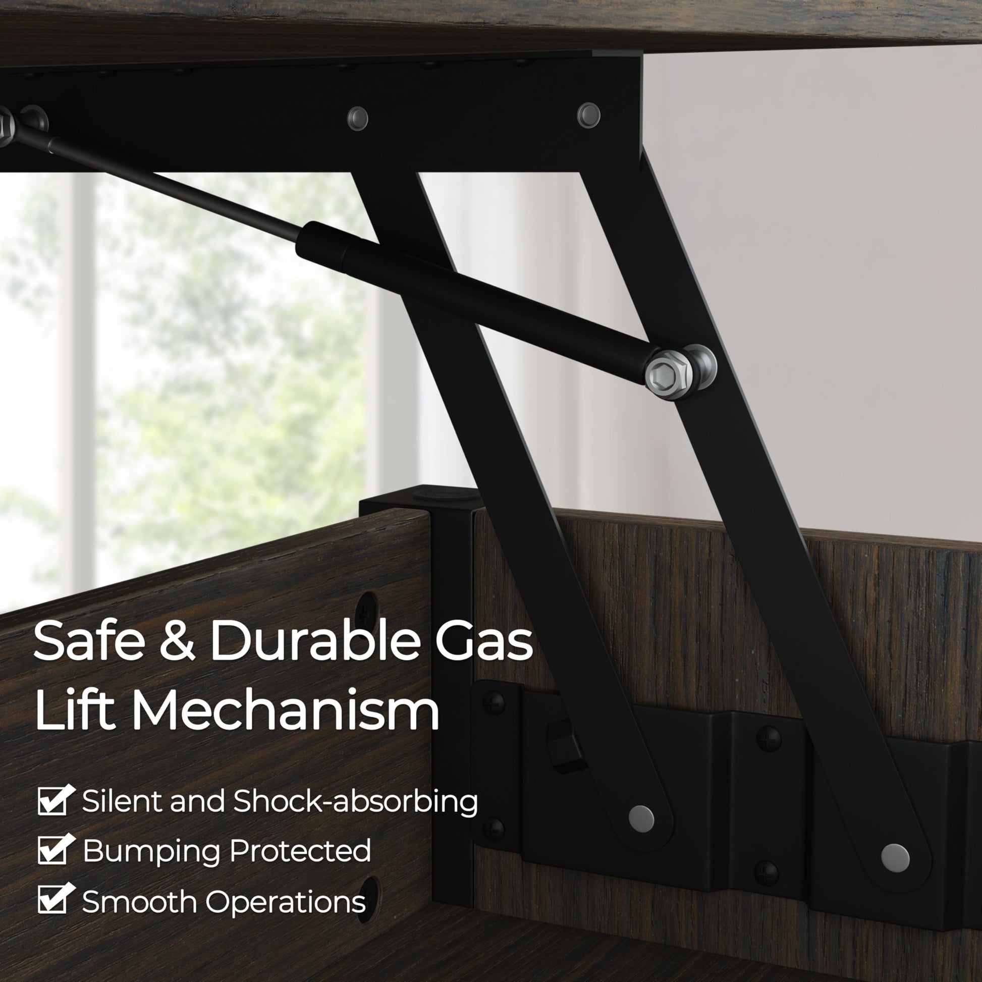 - Sturdy and Safe: Founded atop four solid tapered wood legs, this sturdy lift-top coffee table boasts a CARB P2 MDF main body with a water-resistant veneered surface and a metal spring-lifting mechanism