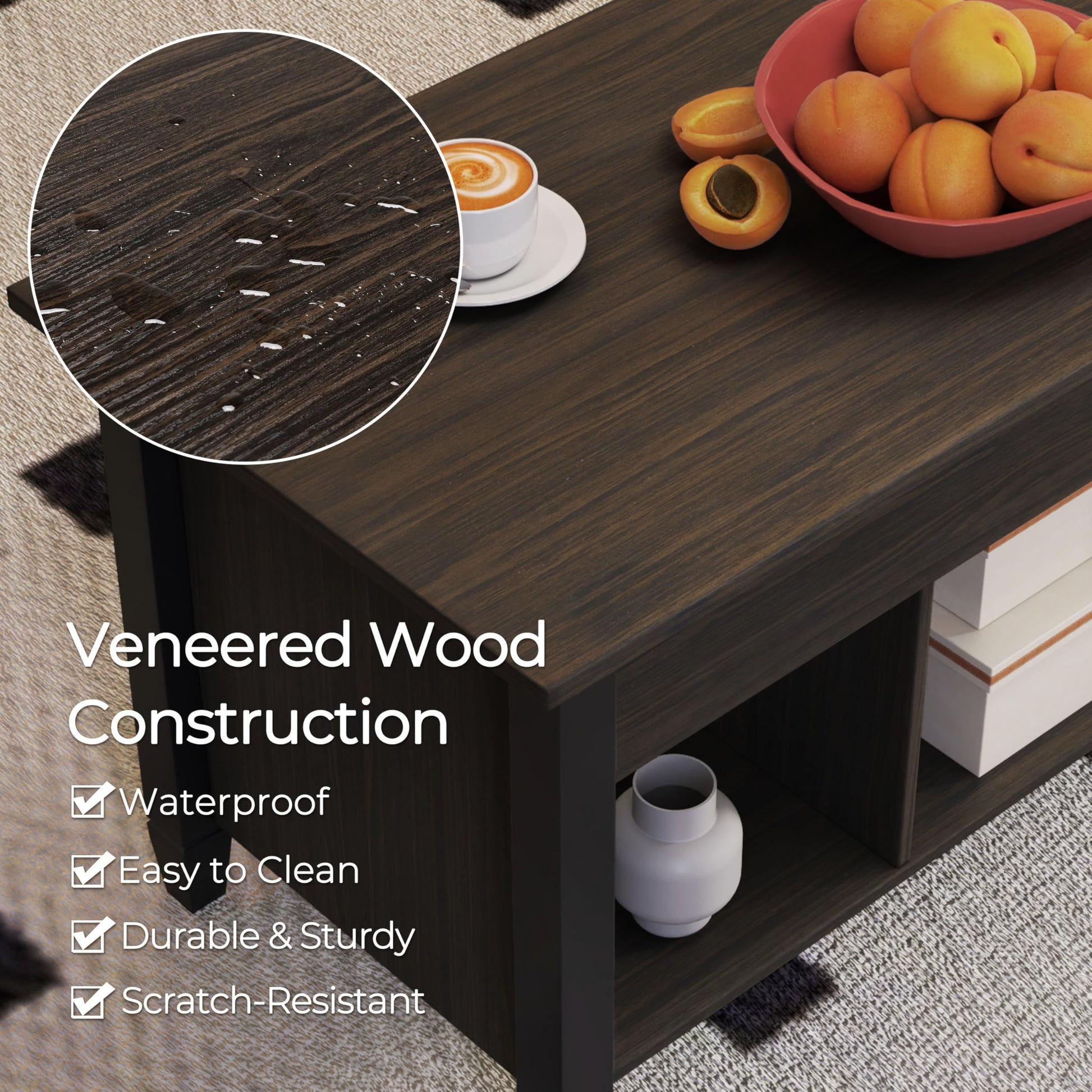 Yaheetech Coffee Table, 41in Lift Top Coffee Table with Storage Hidden Compartment & Shelf, Retro Coffee Center Table with Lift Tabletop for Living Room, Espresso