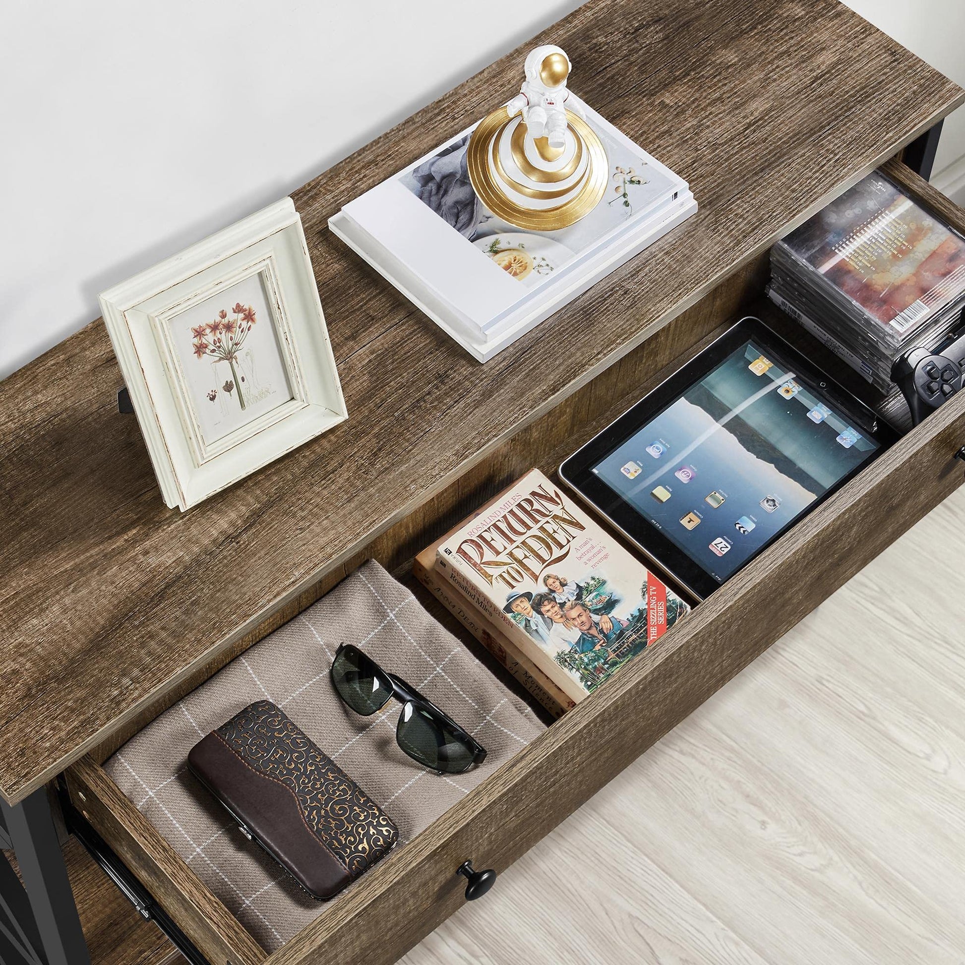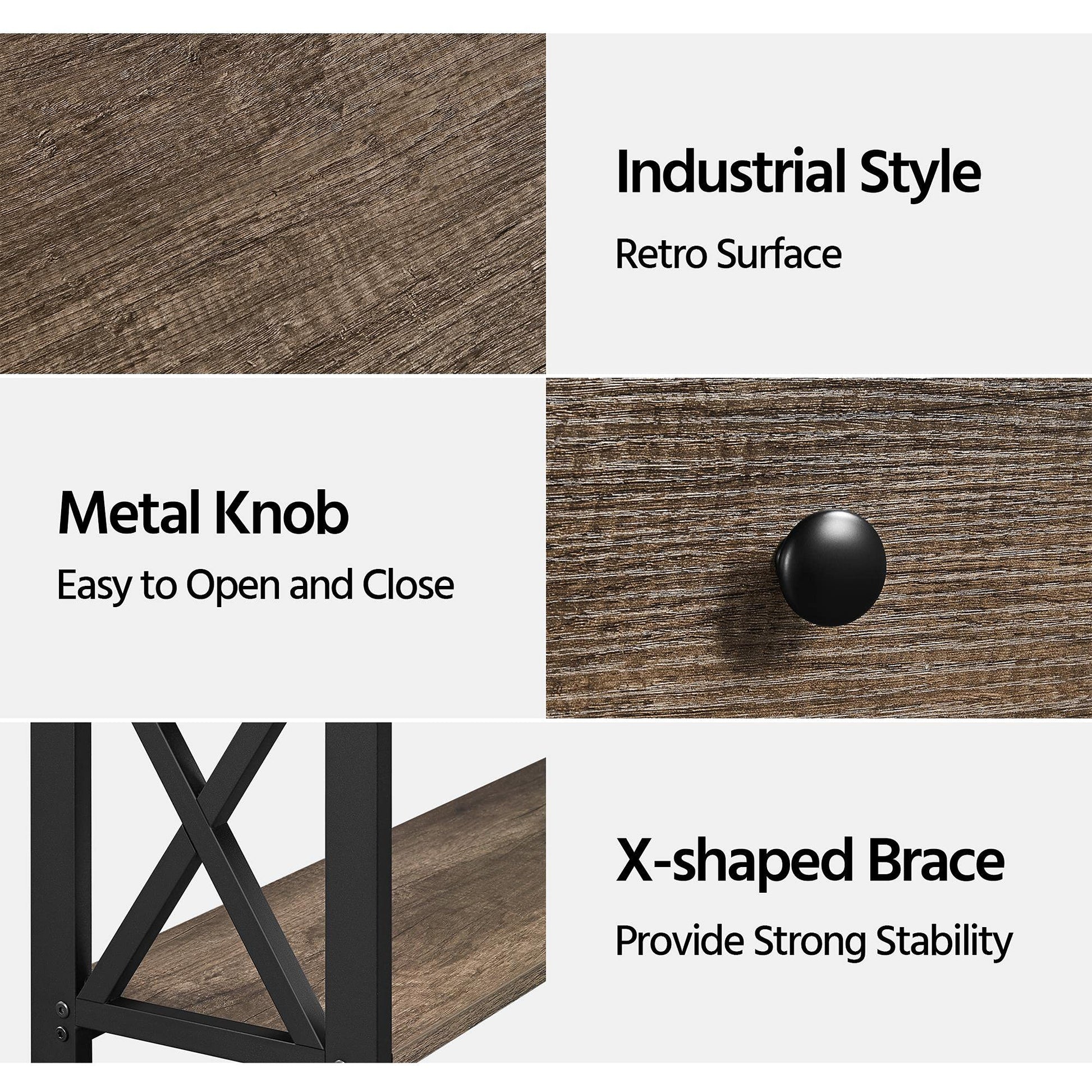 - Sturdy and Durable: This foyer table is constructed of CARB P2 MDF and high-quality iron, ensuring a long life span; the whole console table is covered by frosted coating, and the entire frame is durable and stable; the table top can bear up to 198 lb, each shelf can bear up to 55 lb and the drawer can take up 22 lb. The X structures on both sides are made for enforcement