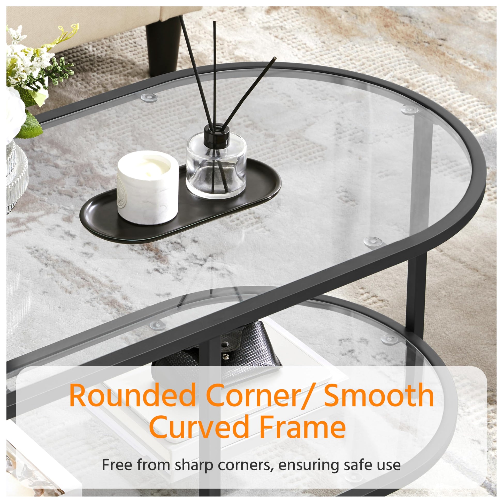 - Sharp Corners-free: This oval tempered glass coffee table is free of sharp corners. combined with the extra-solid tempered glass, robust metal frame and super stable structure, making this black living room table trusty to serve