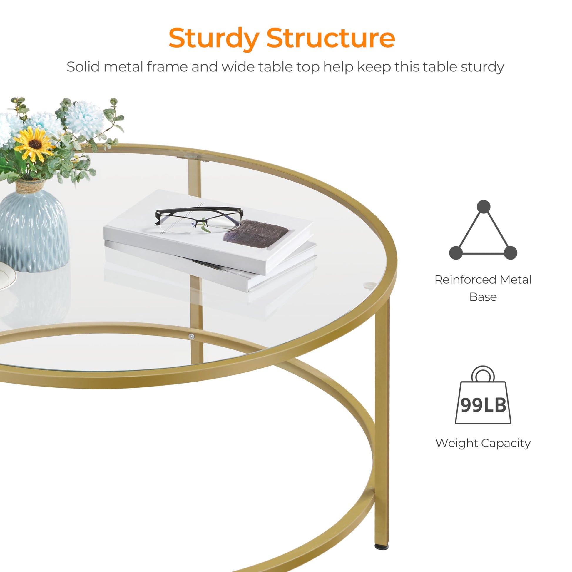 Yaheetech Gold Glass Coffee Table for Living Room, 36" Round Glass Coffee Table with Metal Frame, Circle Coffee Table for Home, Office, Apartment
