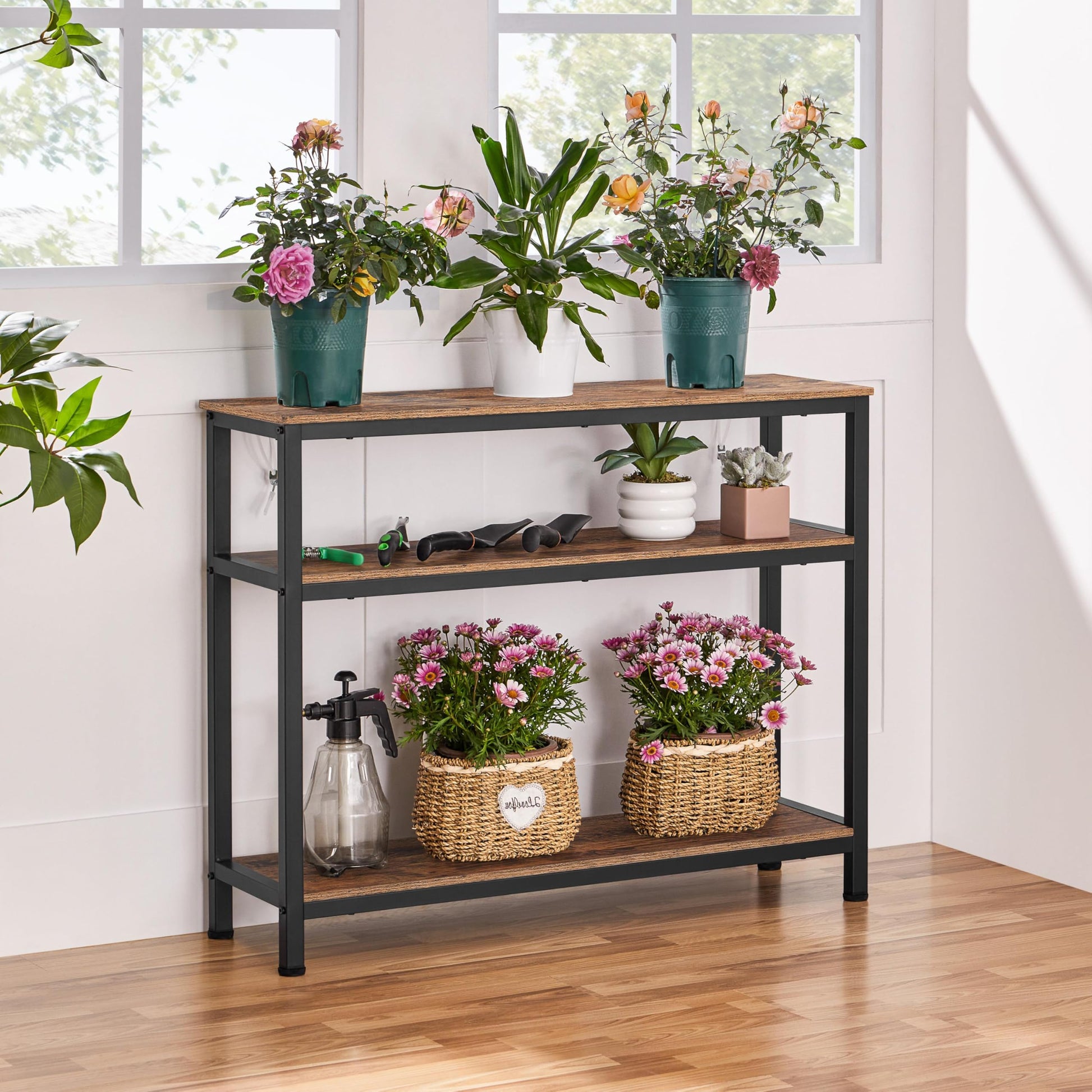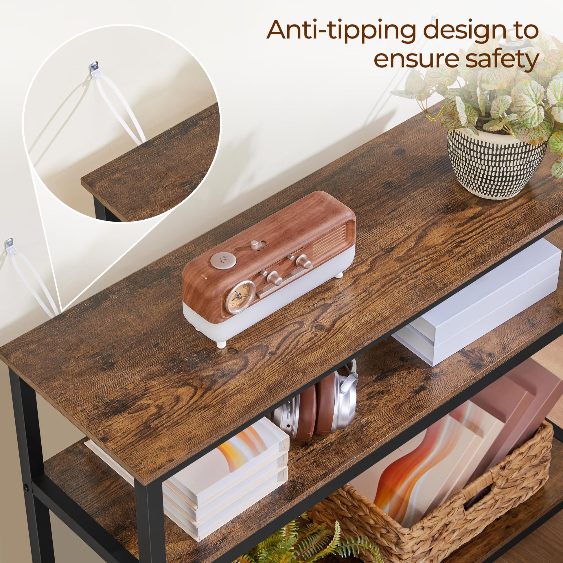 Yaheetech Industrial Console Table, 3 Tier Entryway Table with Storage Shelves, Narrow Sofa Tables for Living Room, Foyer, Hallway, Entrance, Metal Frame, Rustic Brown