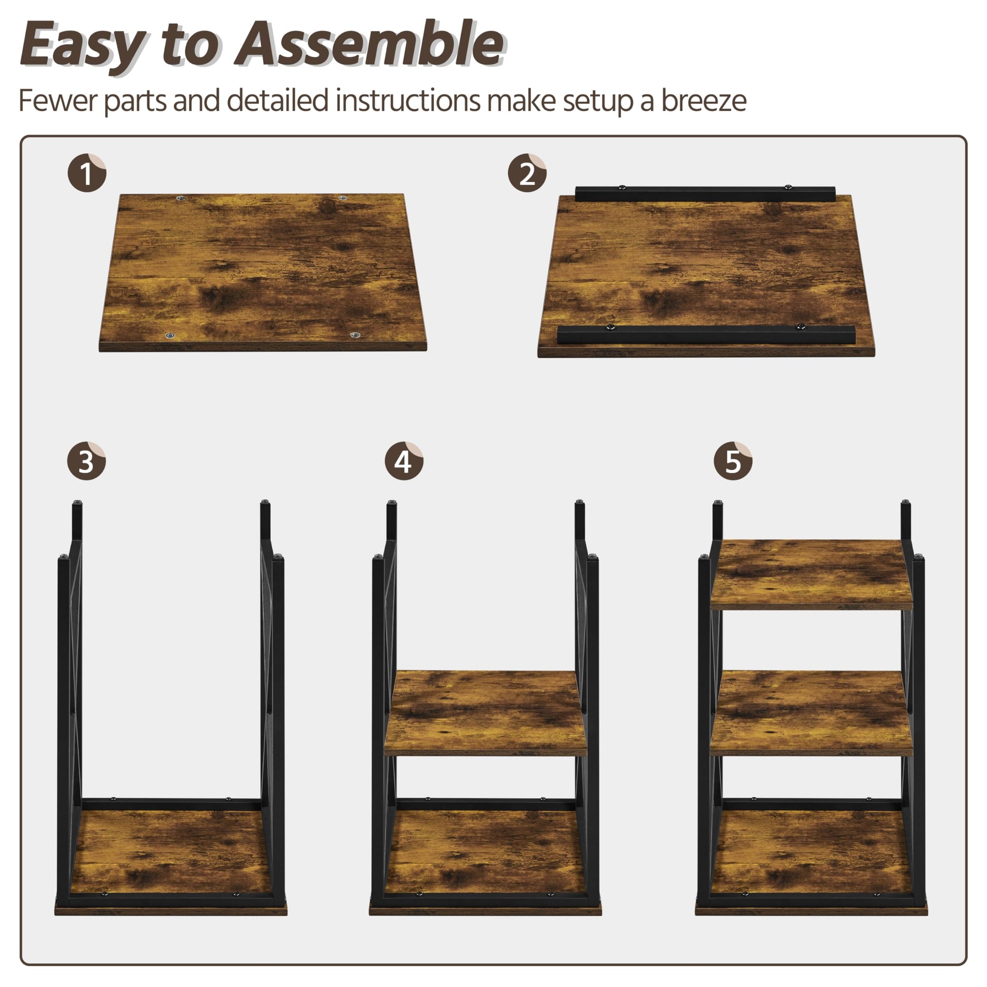 Yaheetech Industrial End Tables Set of 2, 3-Tier Side Tables with Storage Shelves for Living Room, X Design, Strong Metal Frame, Easy Assembly, 16x16x24.5 in, Rustic Brown