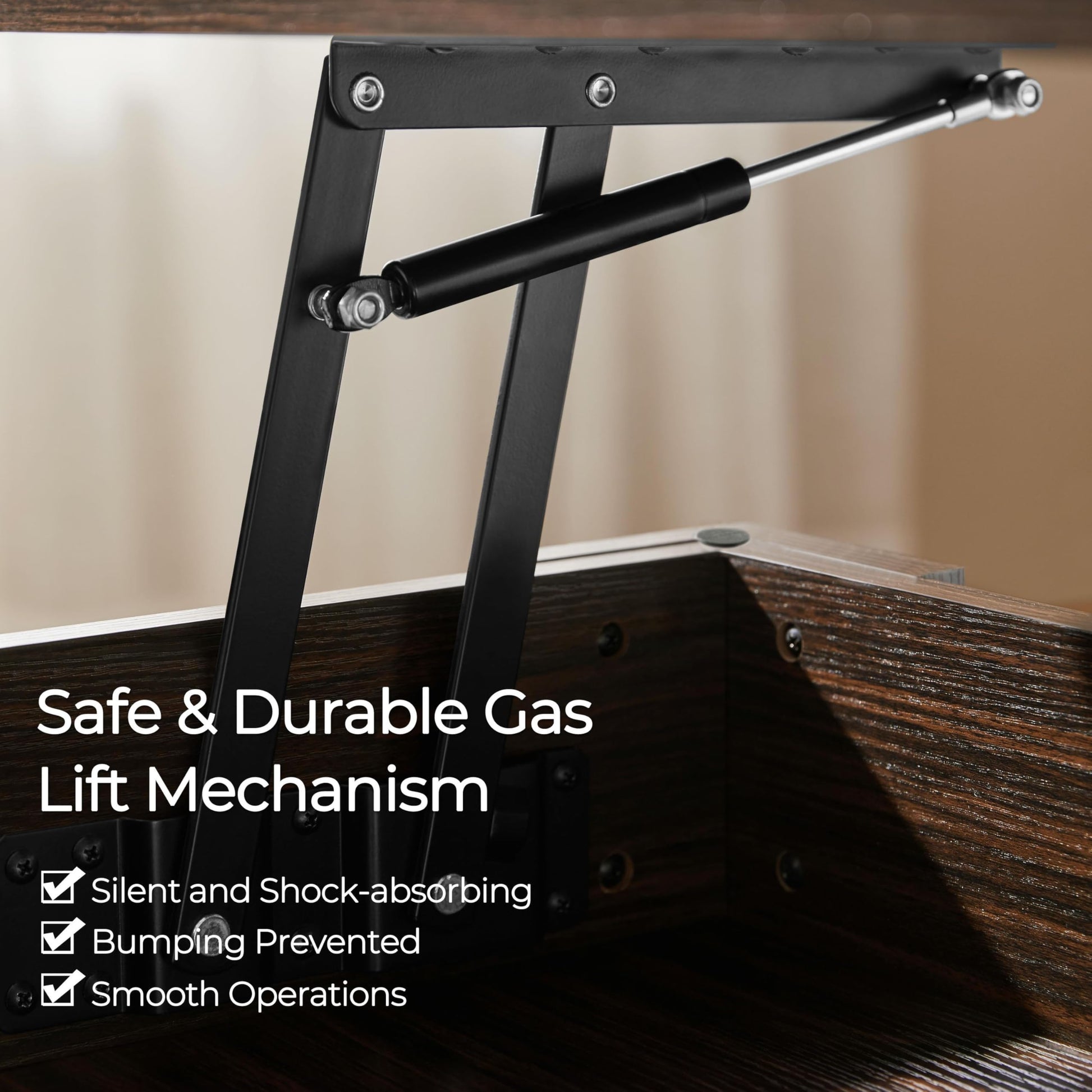 - Practical Lift-top Design: This coffee table is equipped with a spring lift mechanism that helps bring the tabletop to you and creates an 47.5 x 23.5 inches (L×W) spacious working/dining surface while you relaxing on the sofa. The metal mechanism raises the tabletop from 19.5 to 25 inches easily and smoothly
