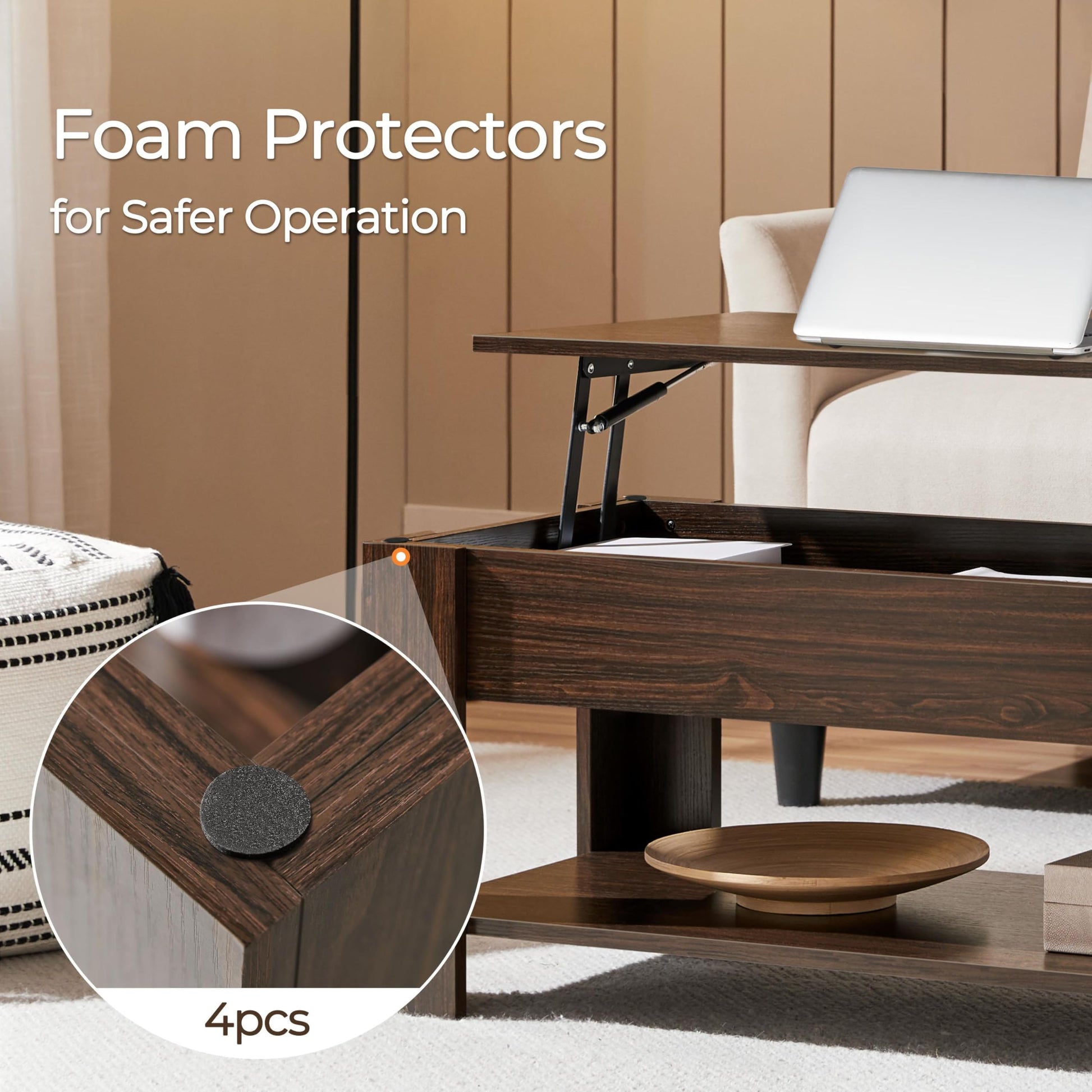 - Functional and Versatile: Sporting a neutral coloring and clean lines, this lift-top table is the piece that can blend harmoniously with most home styles. With this functional living room furniture, you don’t need to bend over to work or dine on the table while relaxing on the couch