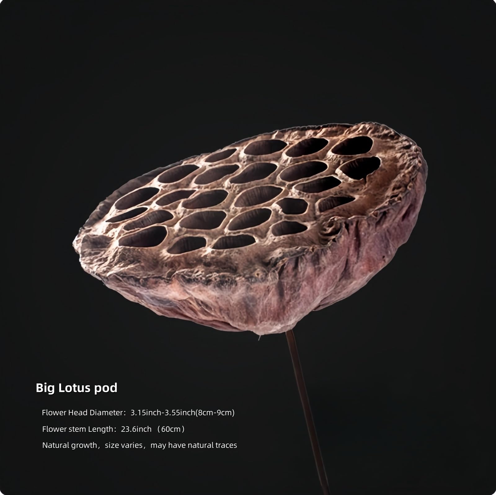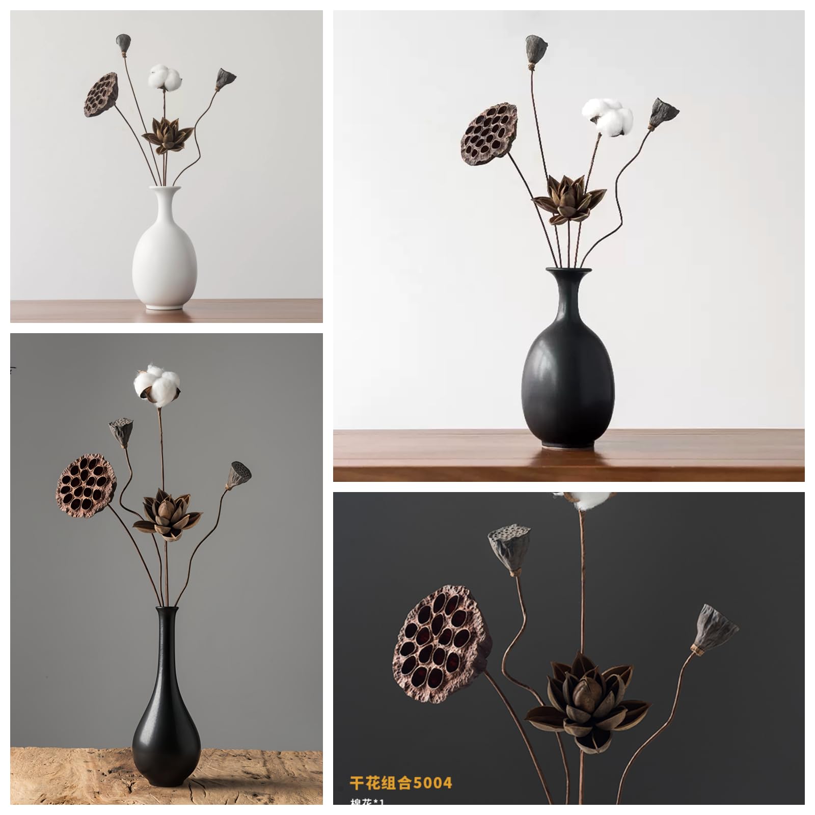 - Quantity: The dried flower combination includes: 1 * Lotus (natural color), 1 * Seedless large lotus pod, 1 * Cotton, 2 * Small lotus pods, with a stem length of approximately 60CM. These different types of grass decor can be combined to create beautiful dried floral arrangements (Vase not included)