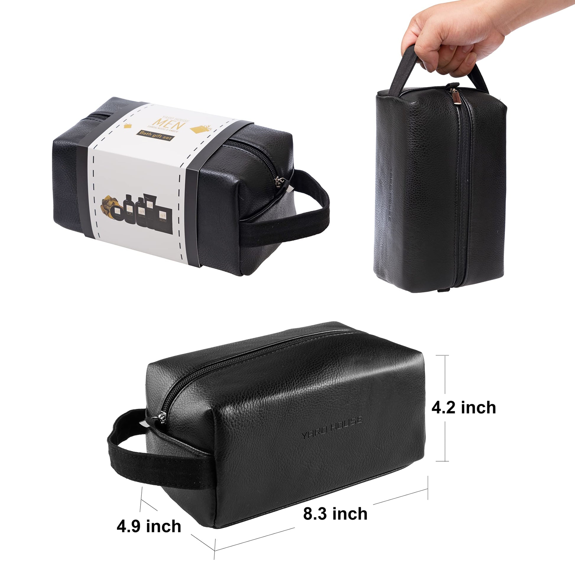 YARD HOUSE Bath and Body Spa Gift Baskets Set for Men - Sandalwood Amber - 7Pc Full Size Spa Kit in Toiletry Bag - Fathers Day Gifts For Husband, Dad From Wife, Daughter Son, Birthday Gifts For Him
