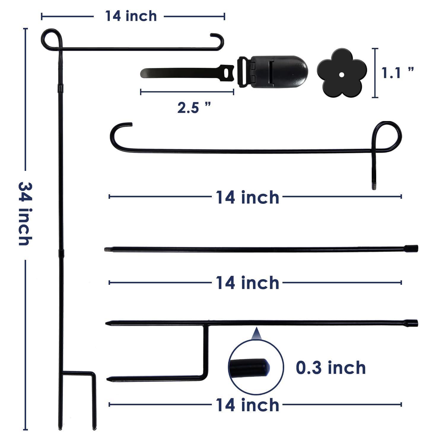 - 【FIT AND NO BLOWN AWAY】- Our garden flag stand holds the standard size small flags perfectly (max to 12.5'' wide). The stand comes with rubber stopper and clip with adjustable Velcro that attaches to the flag and stand, Keep your garden flag from blowing away, Work great especially in windy conditions.