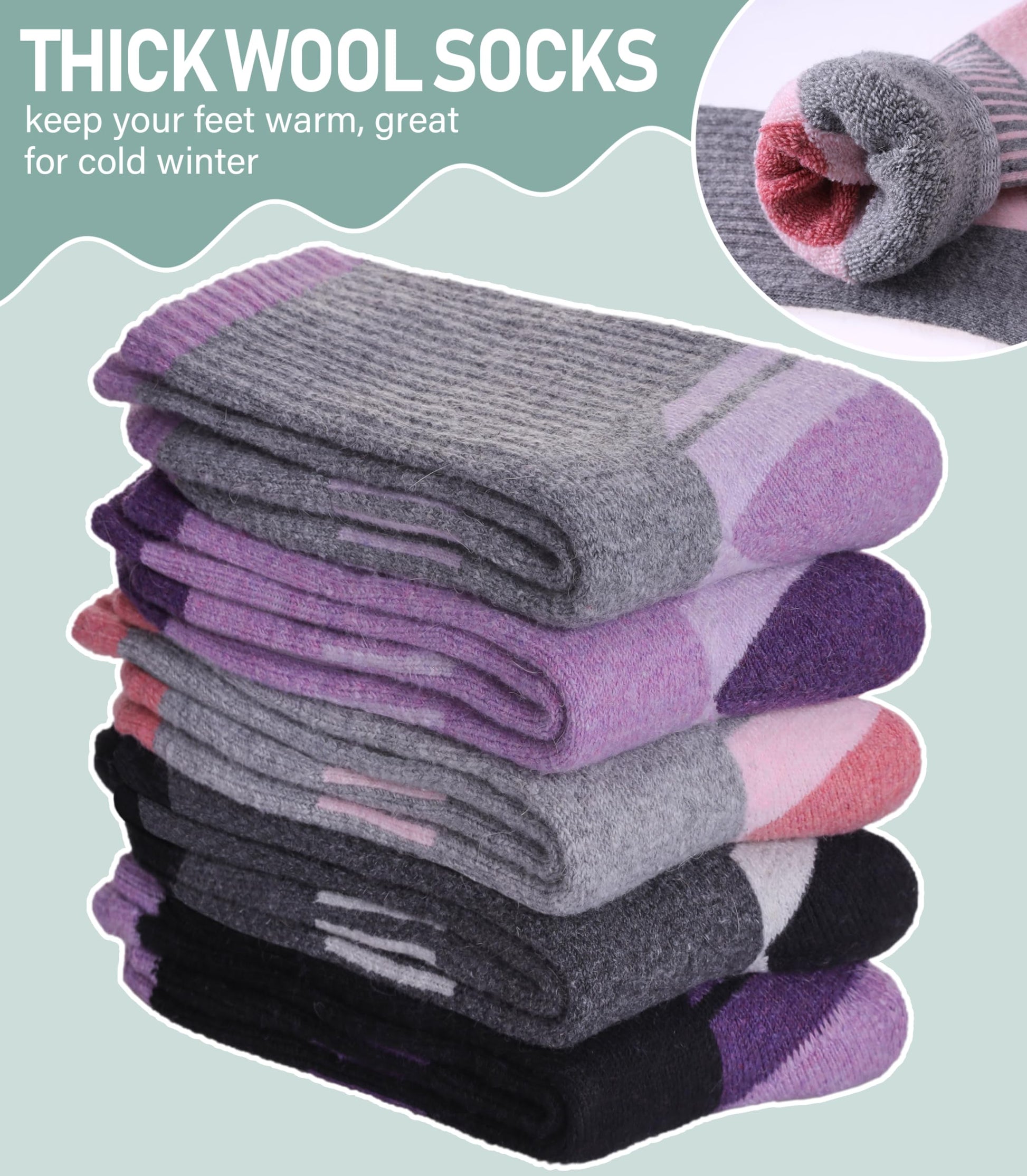 Yebing Merino Wool Hiking Socks for Womens Thermal Warm Winter Boot Crew Cushion Cozy Thick Work Gift Socks 5 Pairs Mixed Color A,Medium