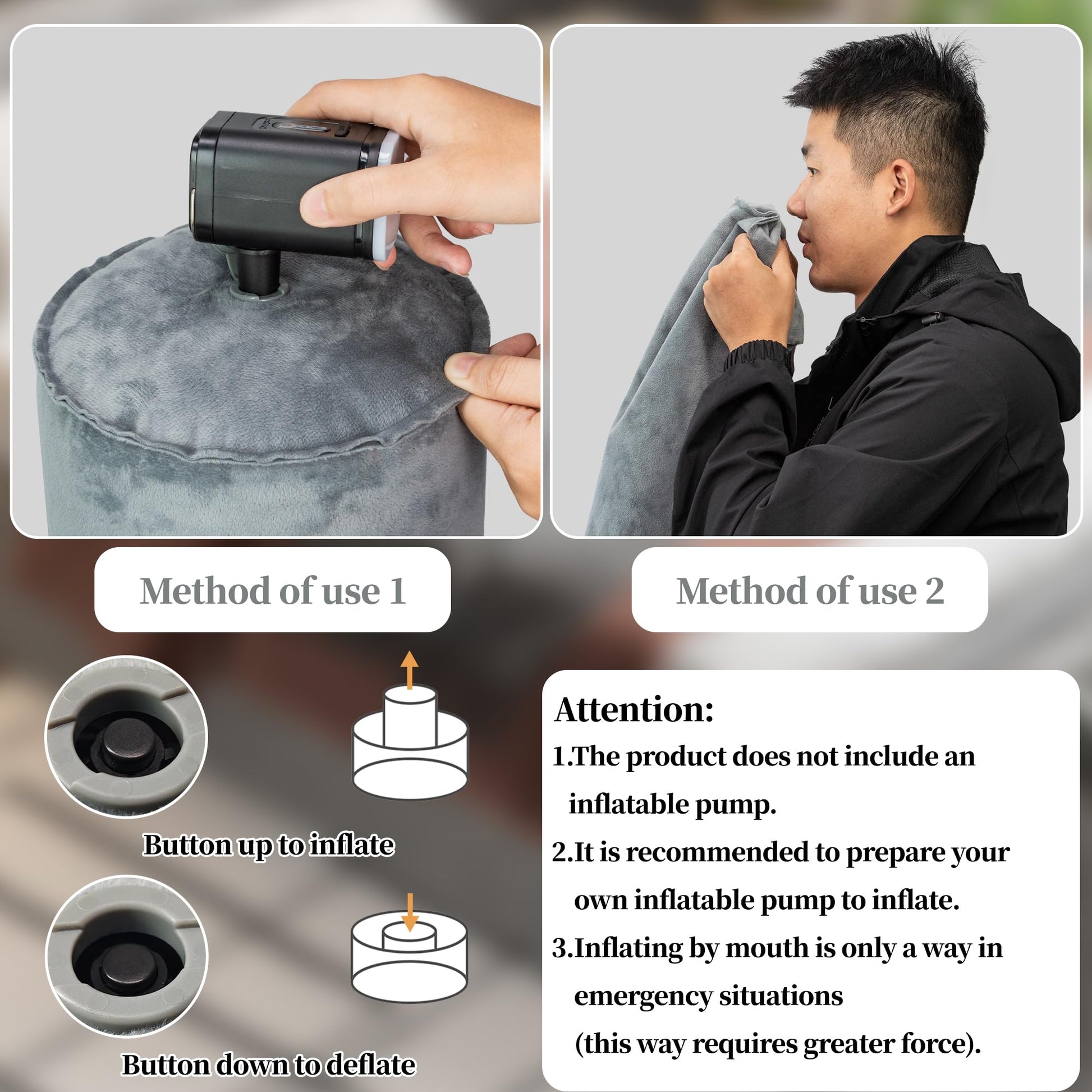 - √INFLATION VALVE: This side sleeper pillow is equipped with a inflating valve, you just need to press the button on the inflatable port and then blow in air through your mouth or use the inflatable pump (not included) to complete the inflation. You are able to adjust the level of inflation of the pillow to suit your needs. If you prefer softer support, you can fill it with less air; if you want firmer support, you can fill it with more air, ensuring that you get the support and comfortable