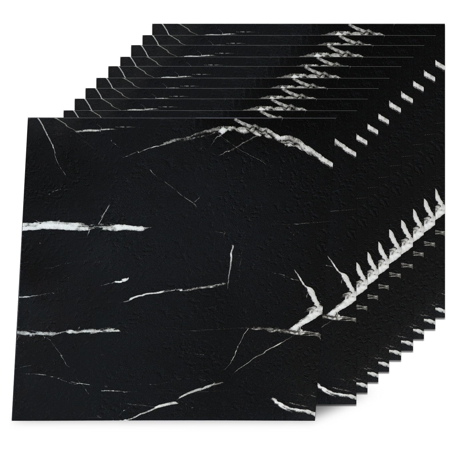 Yipscazo 32-Pack Peel and Stick Floor Tiles, 12" x 12" Diamond Black Vinyl Flooring, Waterproof Self Adhesive Tile for Bathroom, Kitchen, RV, DIY Renovation
