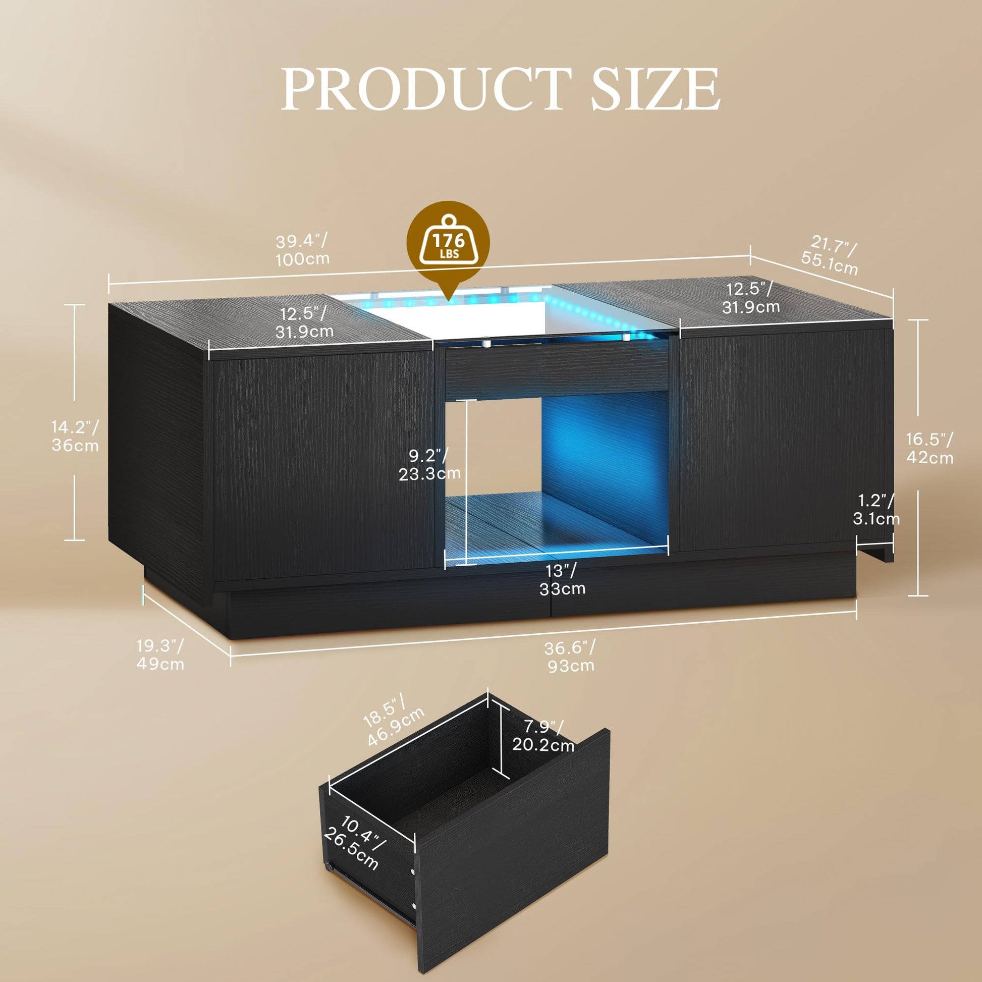 - Light Up Your Living Space: Brighten your home with our glass coffee table, featuring multi-color LED lights controlled by remote or app. Adjust brightness, sync with your favorite tunes, and enjoy Bluetooth for an immersive experience