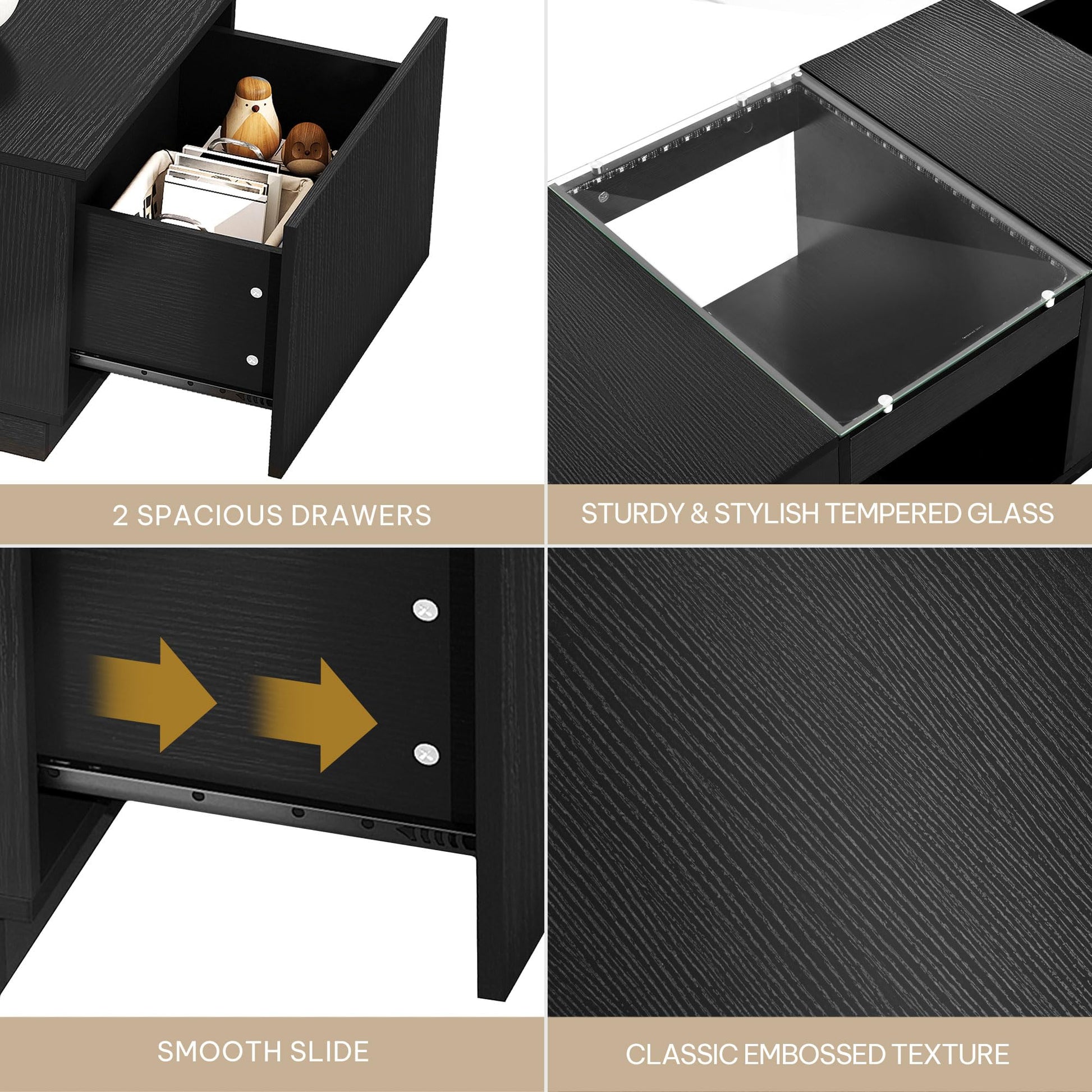 - Smart Storage: With 2 spacious drawers, our coffee table for living room offers ideal storage for essentials, from magazines to gaming gear, keeping all your items organized. Plus, the open shelf makes it easy to grab your remote or phone when needed