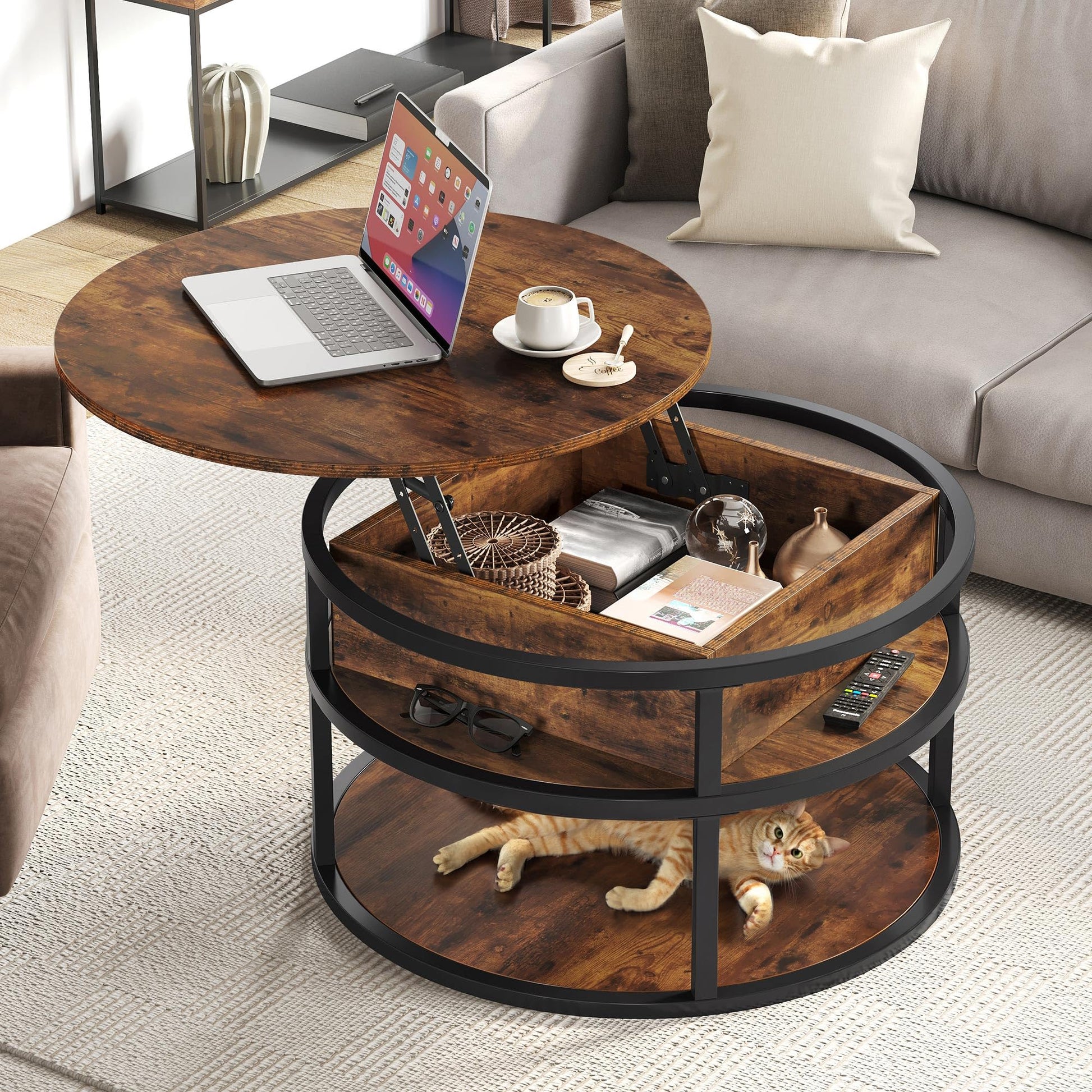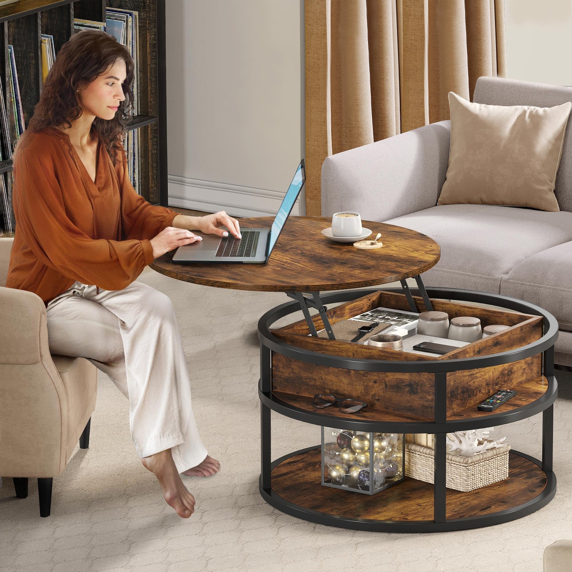 YITAHOME Round Lift Top Coffee Table with Storage, Brown Farmhouse Coffee Tables for Living Room Modern Coffee Table with Hidden Storage Compartment, Round Center Tables Living Room Home Office, Brown
