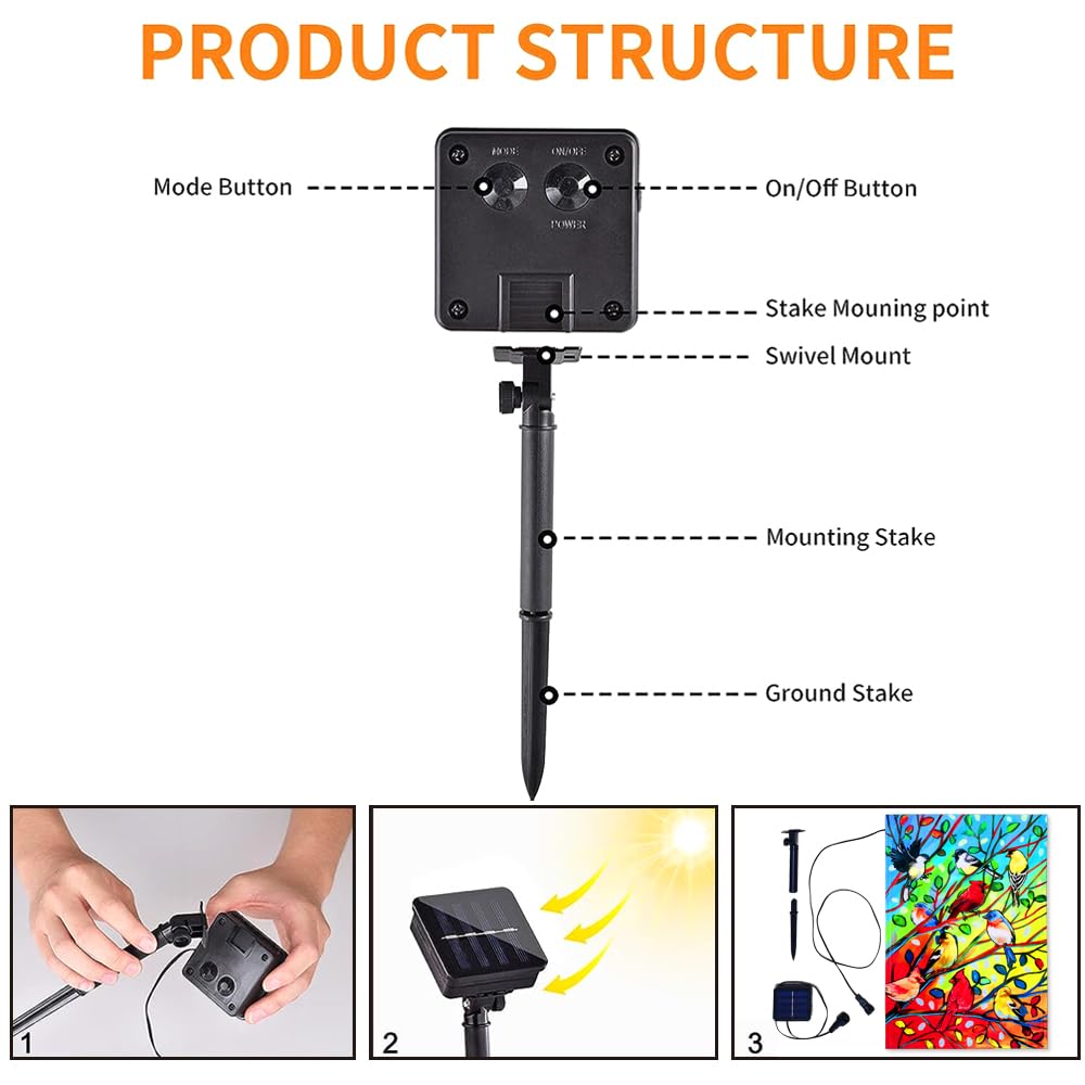 - Perfect Home Decorations: Tree bird yard flag with solar 10 warm white led lights, illuminate the garden night, making your holiday more interesting and lively.