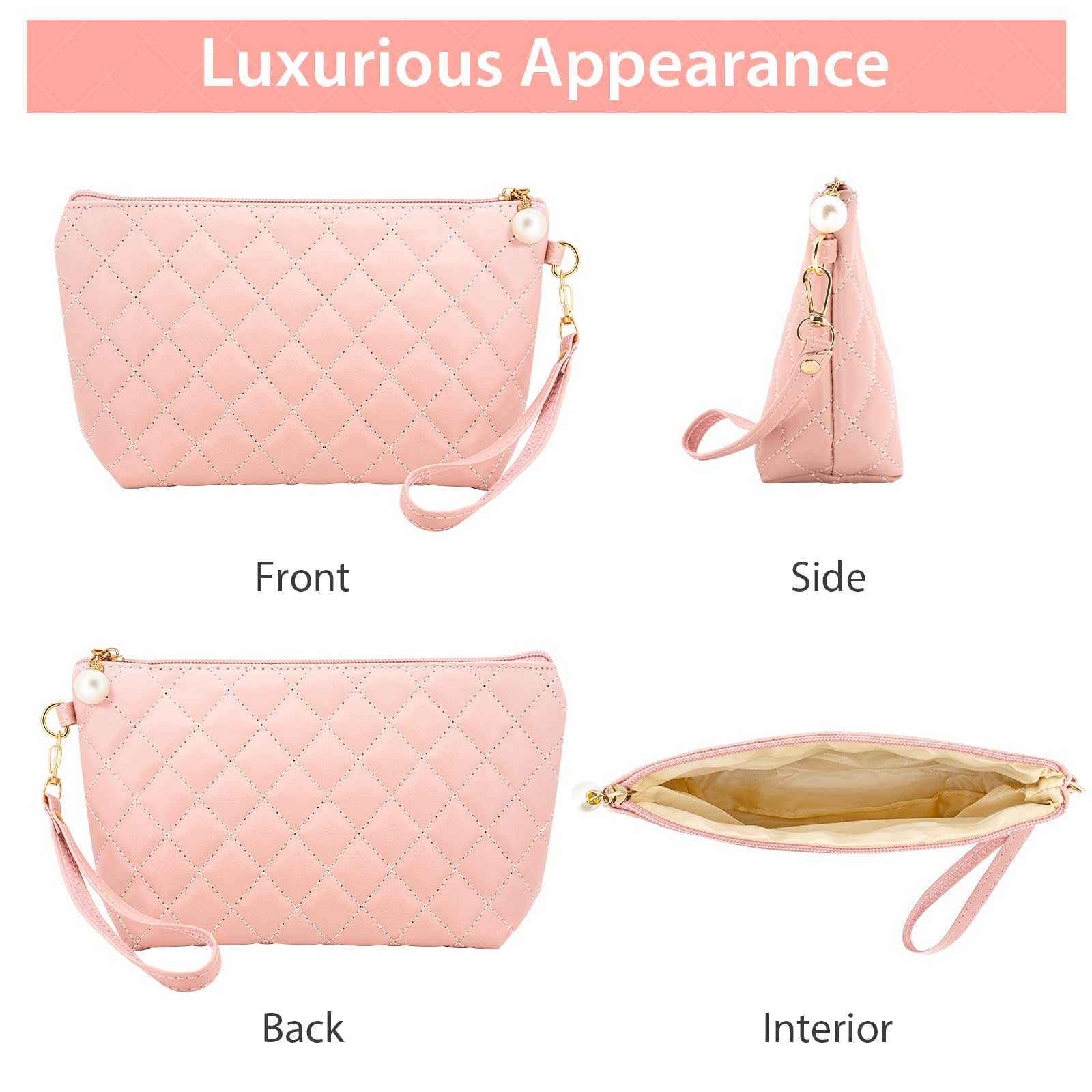 - 【Special Detail Design】This purses for women adopts a quilted design, with a high-end and fashionable appearance. It has a spacious opening that makes your items clear at a glance. We designed simulated pearls and rhinestones on the zipper to make the entire small bag look cute and unique. Equipped with a detachable wristband on the side, you can free your hands anytime, anywhere. This small bag is very suitable for personal travel and daily use.