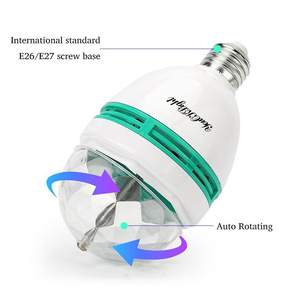 - ♫【FAMILY PARTY LIGHTS】Good for entertainment colorful rotating lamp, Featuring a standard e26 base to fit most lighting fixtures, Automatically rotating while power on, and red, green and blue three colors disco light rotating together.