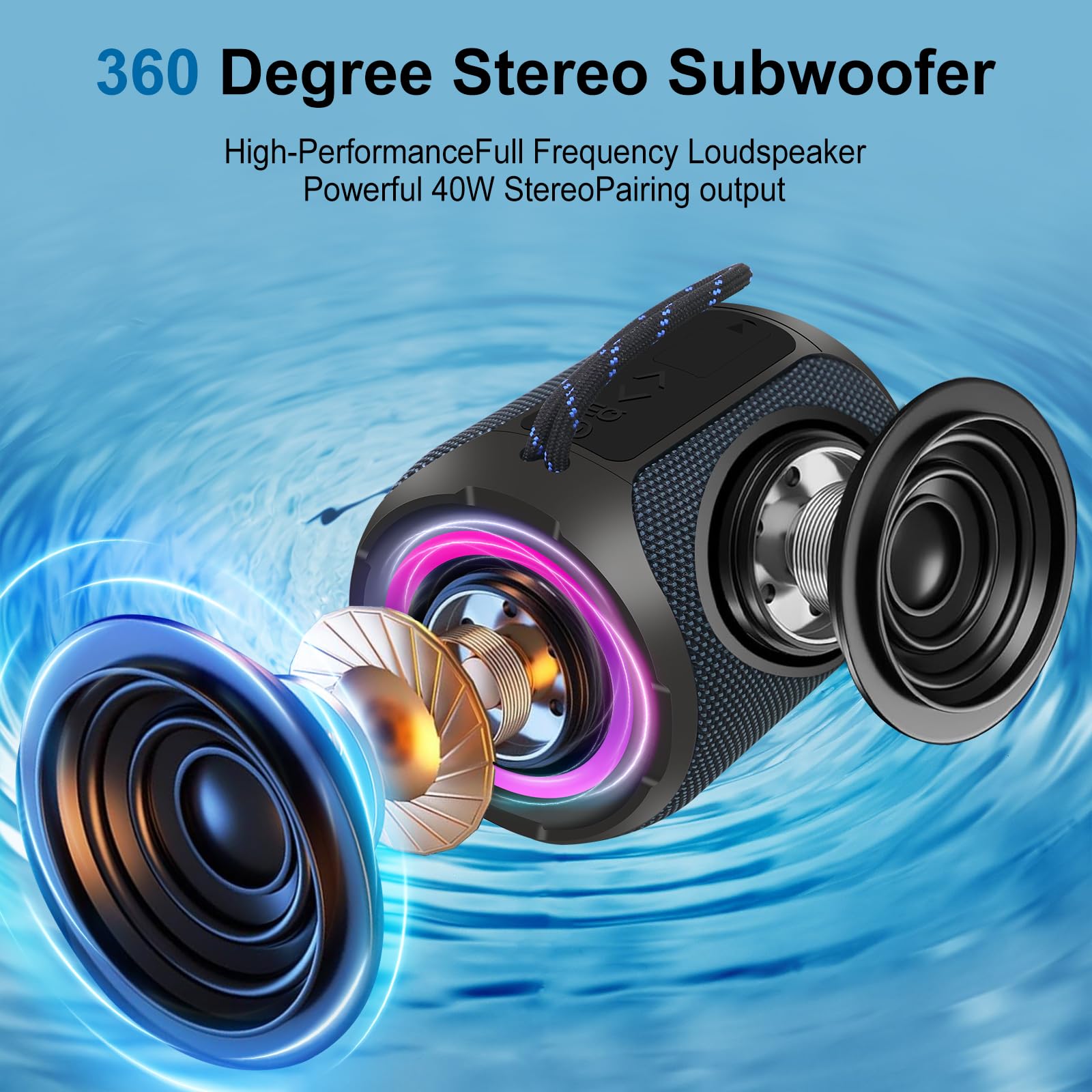 YOUXIU 40W Portable Bluetooth Speaker with Lights IPX7 Waterproof Wireless Speaker TF Double Pairing 24H Playtime,360 Degree Stereo Subwoofer Support Perfect for Outdoor, Travel, and Home Use