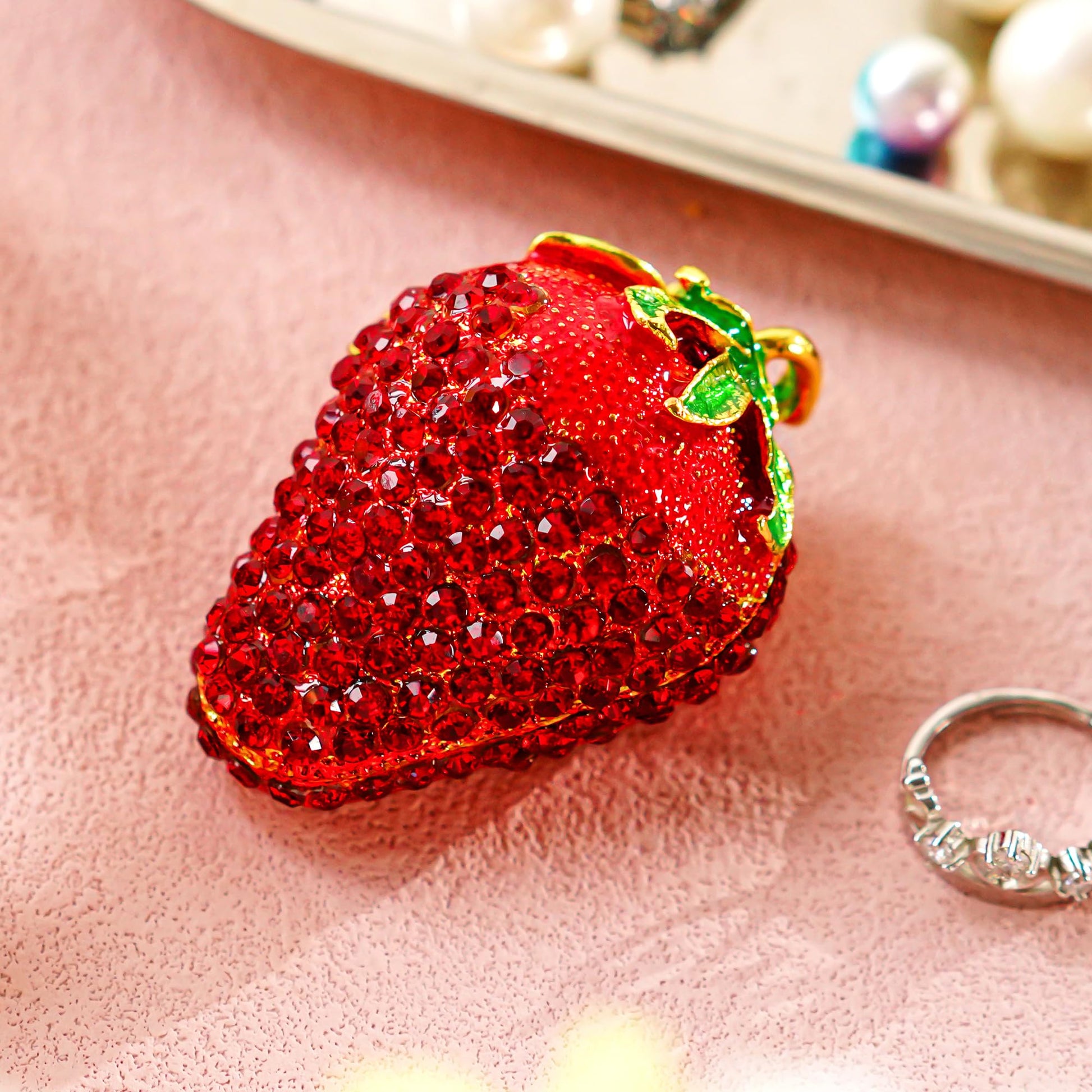 - SIZE:2.5L*1.5H inch(6.5*4 cm).Hand-painted enameled small red strawberry figurine,made by eco-friendly zinc alloy and bejeweled with sparkling crystals ,lead-free, non-toxic and safe