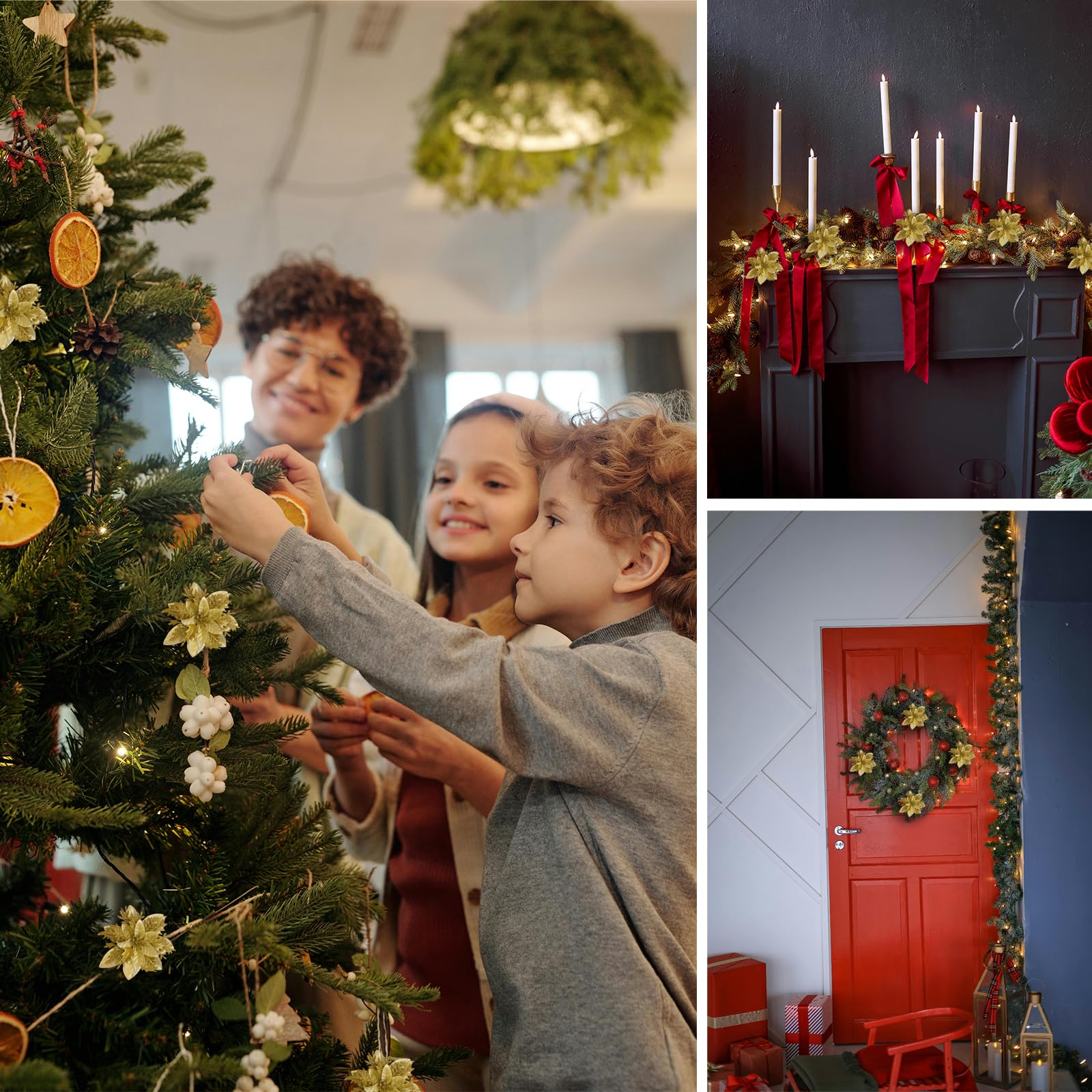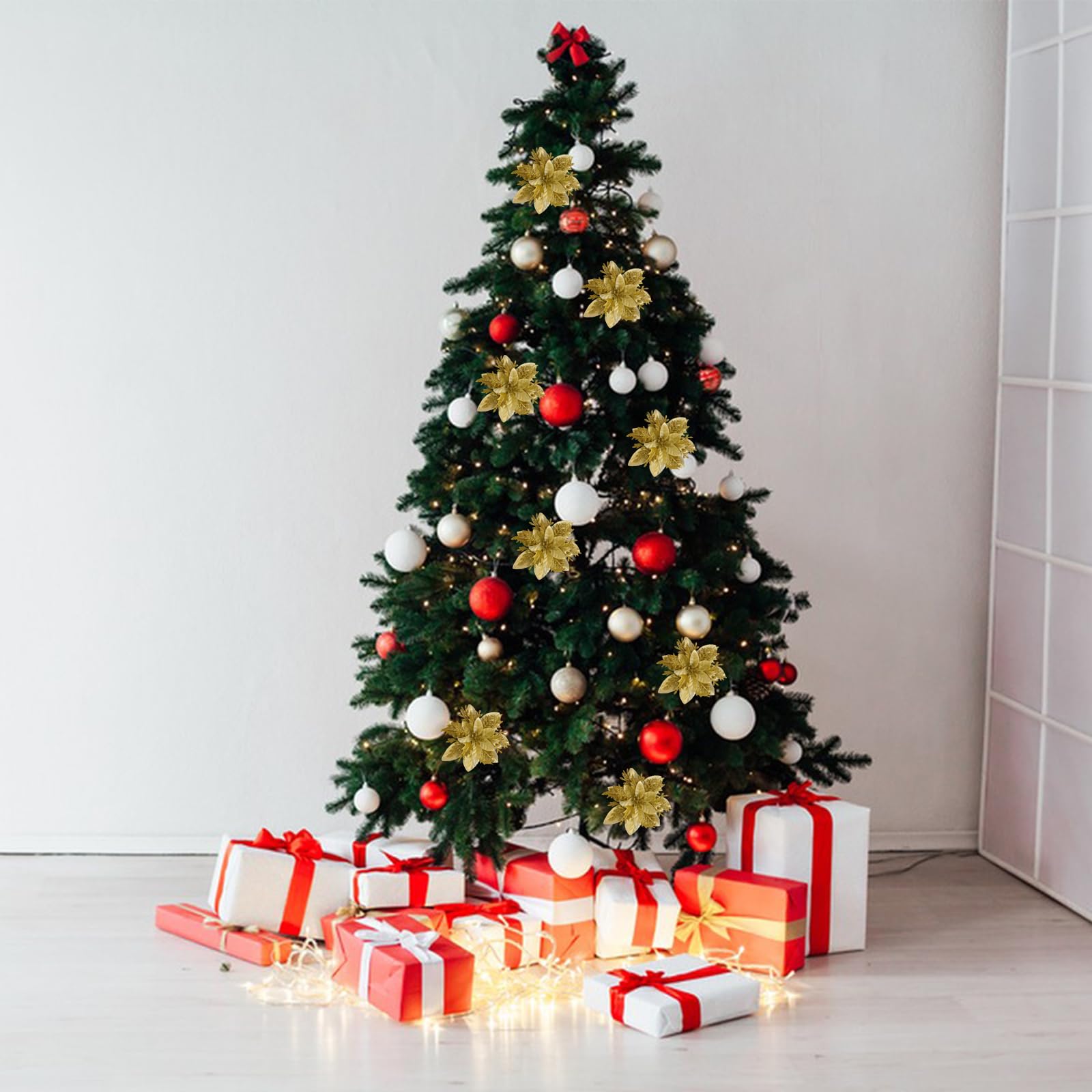 - ENHANCING CHRISTMAS TREE ELEGANCE AND HOLIDAY SPIRIT: These poinsettias make the Christmas tree shine brightly! Their glittering blooms look stunning and are perfect for filling in larger, bare areas on the tree. These festive flowers enhance the tree's elegance and charm, adding an extra layer of holiday spirit. Definitely, these Christmas flowers offer exceptional value for your money!