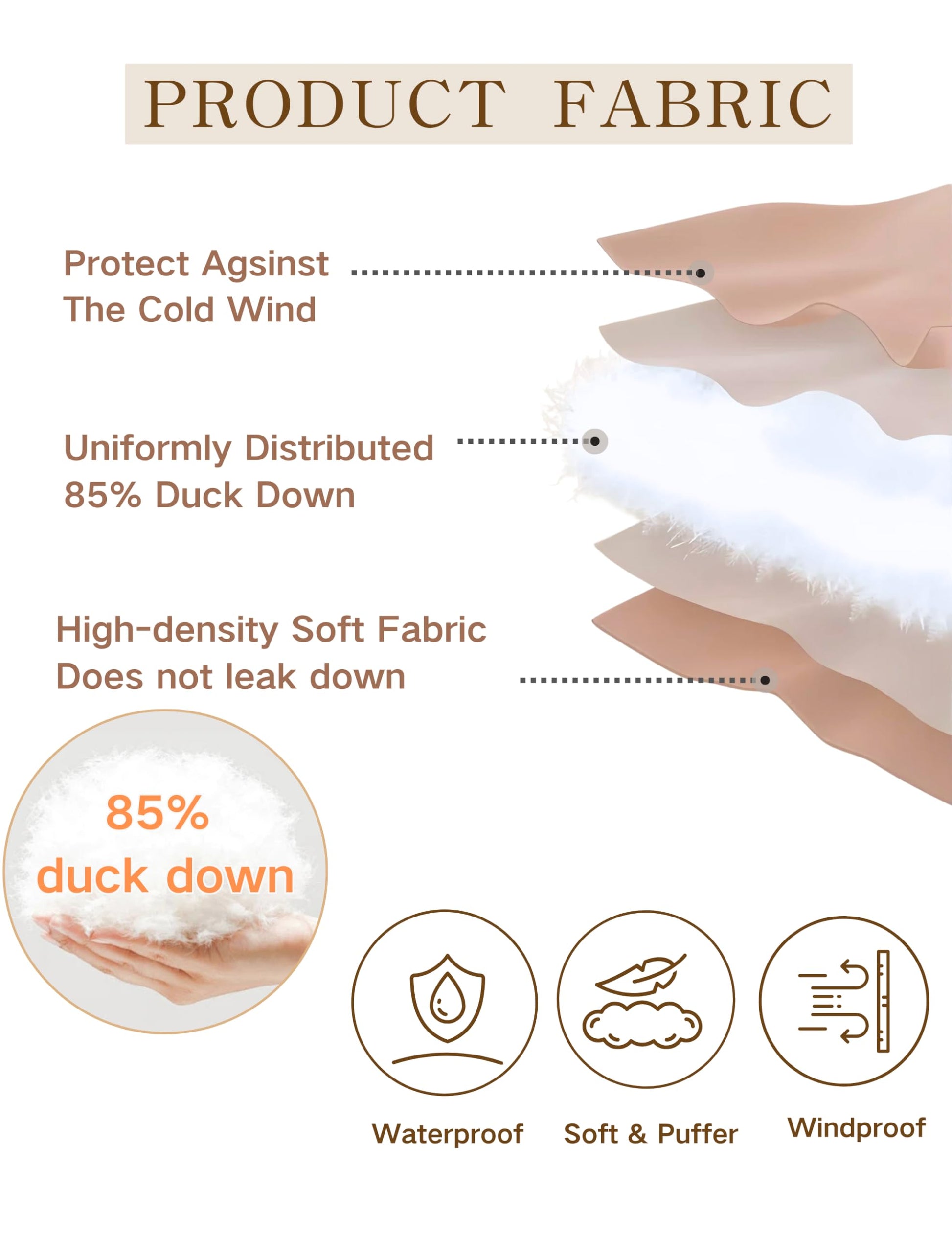 - Premium Material: 85% Duck Down, 15% Feather Filling. Polyester Shell