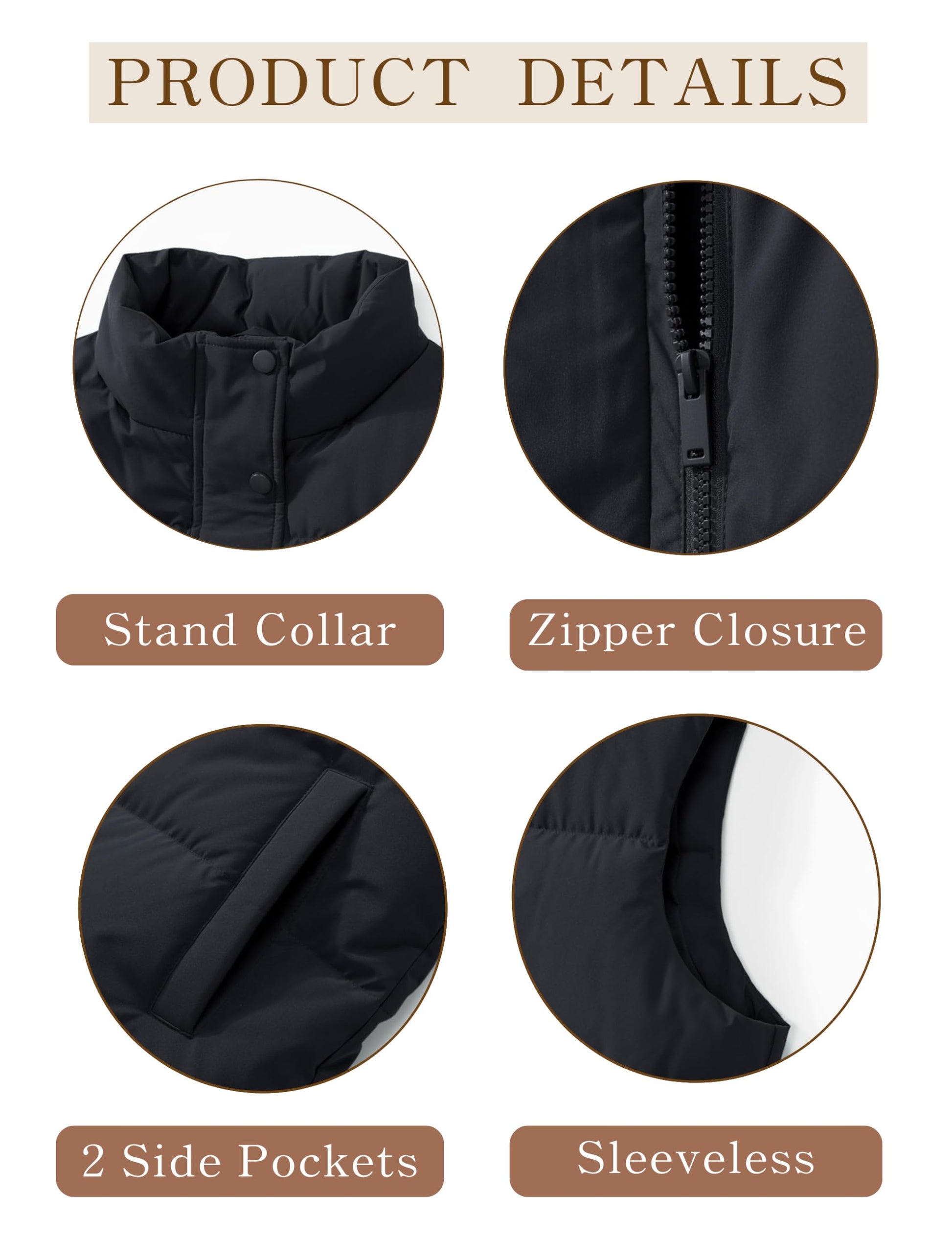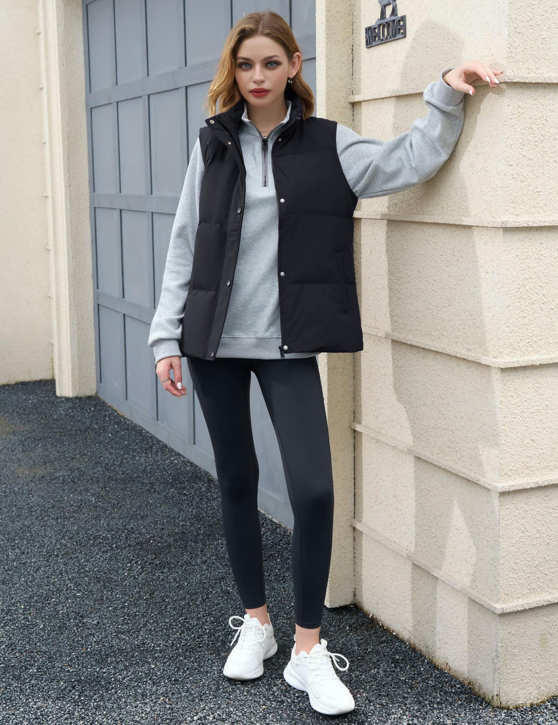 - Lightweight and Warm: Windproof, protect against water. Combine lightness and warmth, this black puffer vest for women keeps you cozy without the bulk