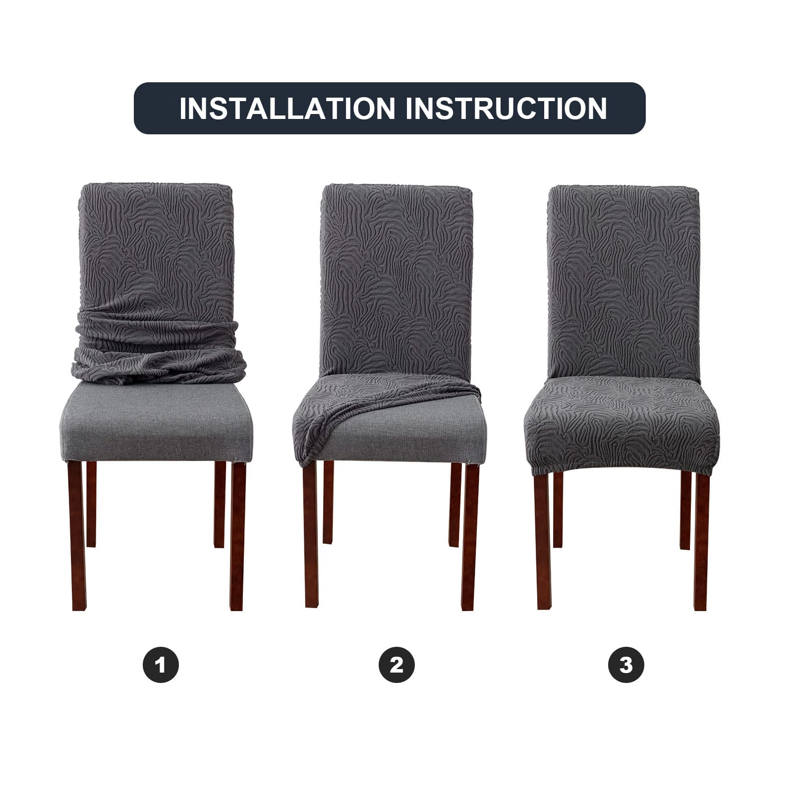 - High-Stretch Material: Our dining chair cover has two-way high elasticity and luxury, smooth and durable feel, and the dining chair slide cover is designed with anti-slip belt, which is stronger than the ordinary dining chair slide cover. The chair cover is suitable for most chairs, and the high-stretch fabric can fit your chair very well and make your chair look more fresh.